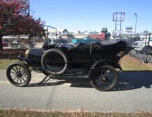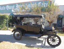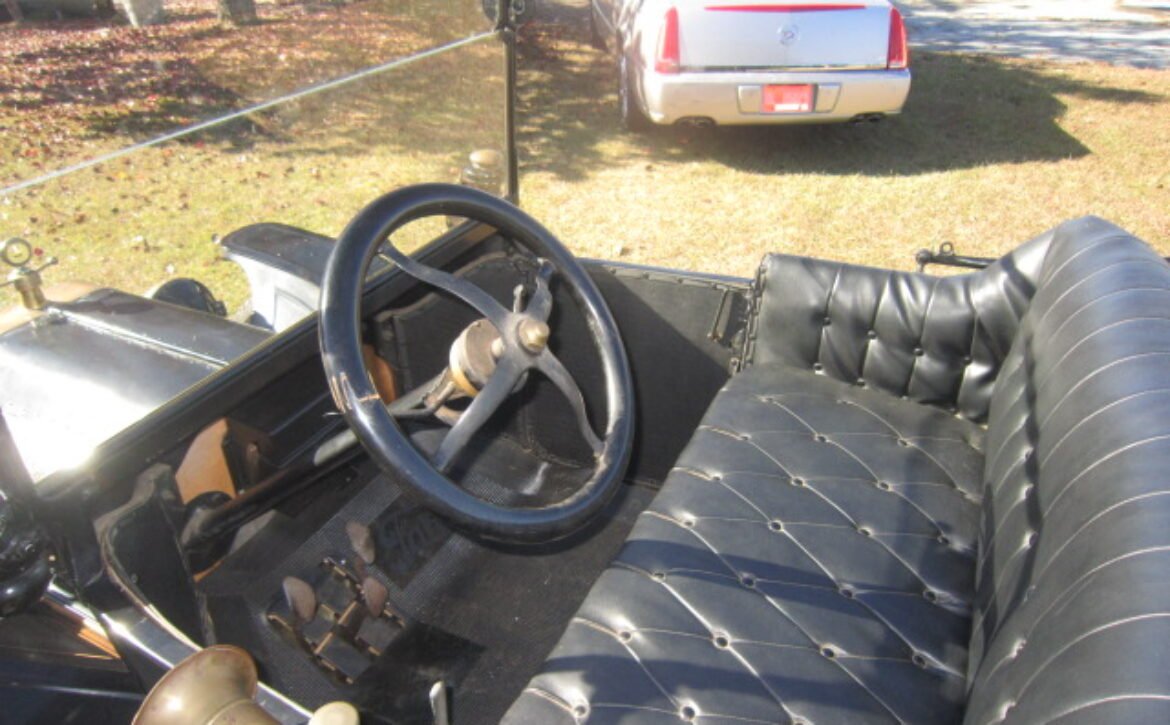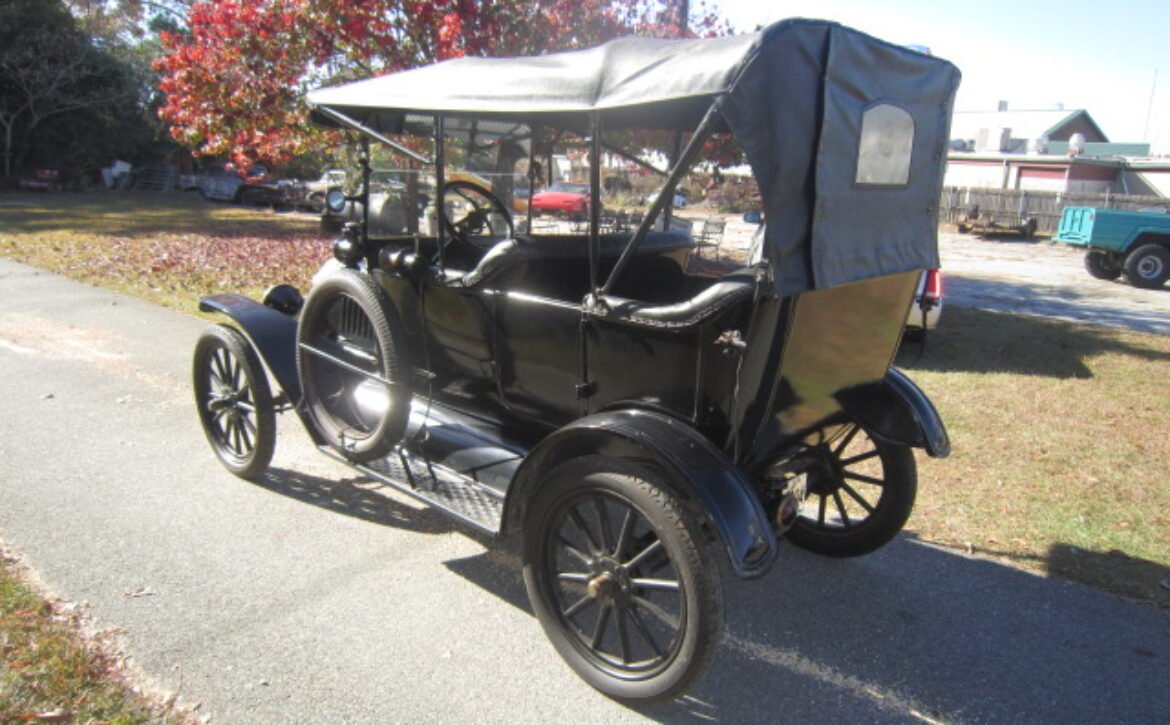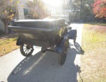 This exquisite 1915 Ford Model T Touring car is a testament to the early years of automotive innovation. Adorned with a striking black exterior paired with a timeless black interior and top, this Model T exudes elegance and classic charm. It features a brass radiator and kerosene running light and tail light that add to its vintage appeal.