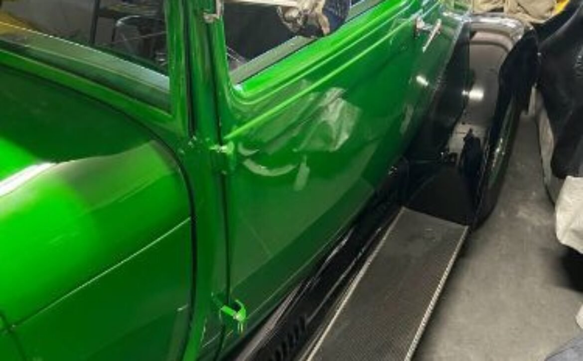This coupe is in excellent condition, nearly qualifying as a show car. Its all-steel body is a testament to its lasting durability, with original Henry Ford steel construction. While the car maintains an authentic steel presence, the two front fenders are composed of fiberglass, preserving the car’s classic charm.