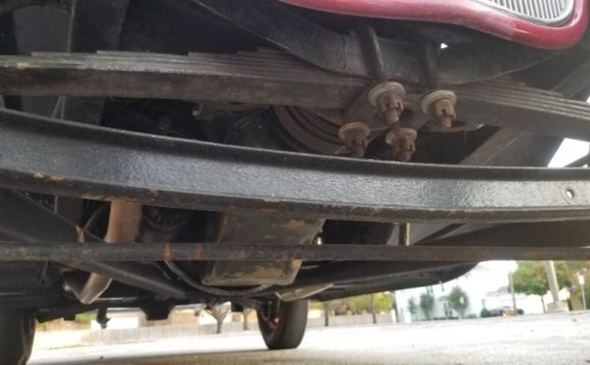 Under the hood lies a Chevy 283 engine with a 4-barrel carburetor, delivering robust performance. A fan attached to the rear of the radiator, managed by a thermostat, effectively maintains the engine temperature at 160 degrees, even under Texas heat. The car retains its original transmission setup with a 3-speed toploader, a banjo rear end, and a closed torque tube, all devoid of leaks, ensuring an authentic driving experience.