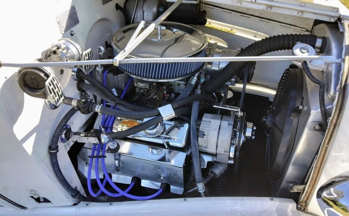 Under the hood, you’ll find a rebuilt 229 cu. in. V6 from a 1981 Chevrolet Malibu, equipped with a mild cam, Edelbrock intake, and a Holley 4-barrel carburetor. The drivetrain is paired with a THM-250 transmission, offering smooth and reliable performance.