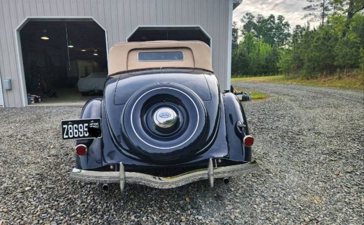 The complete body-off restoration has left this car looking as if it just rolled off the factory floor. Stored in a climate-controlled garage, it has been lovingly preserved over the years. This Ford Cabriolet has graced several car shows, earning accolades and first-place titles as the best in show.