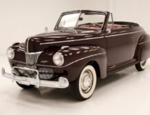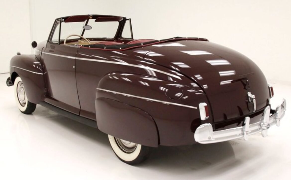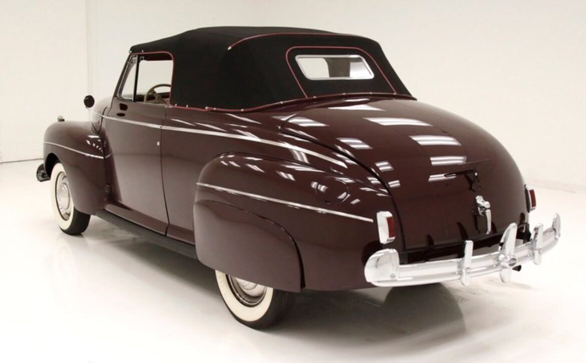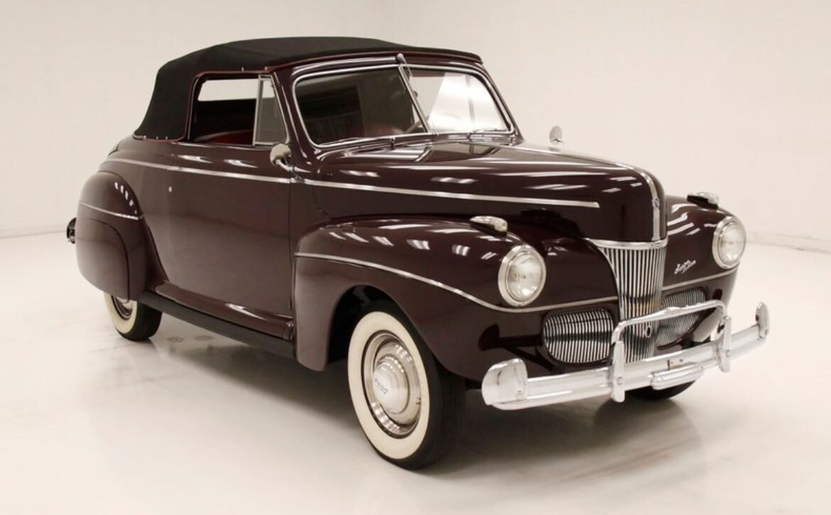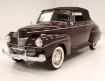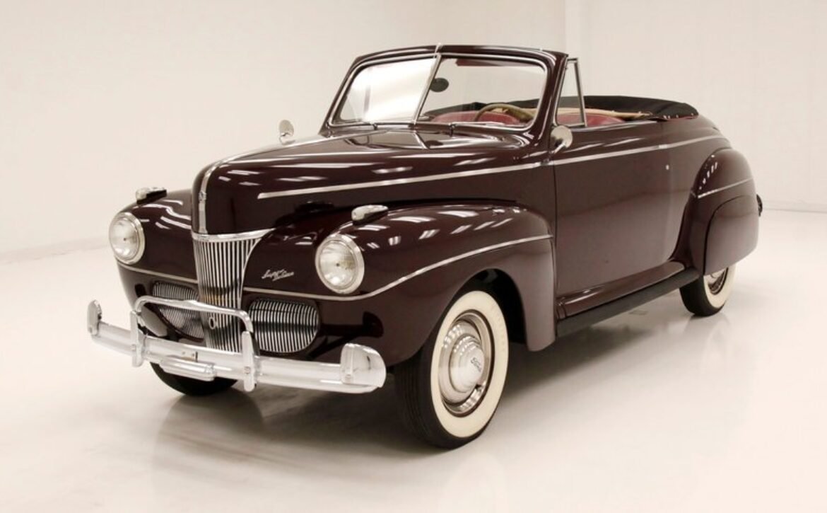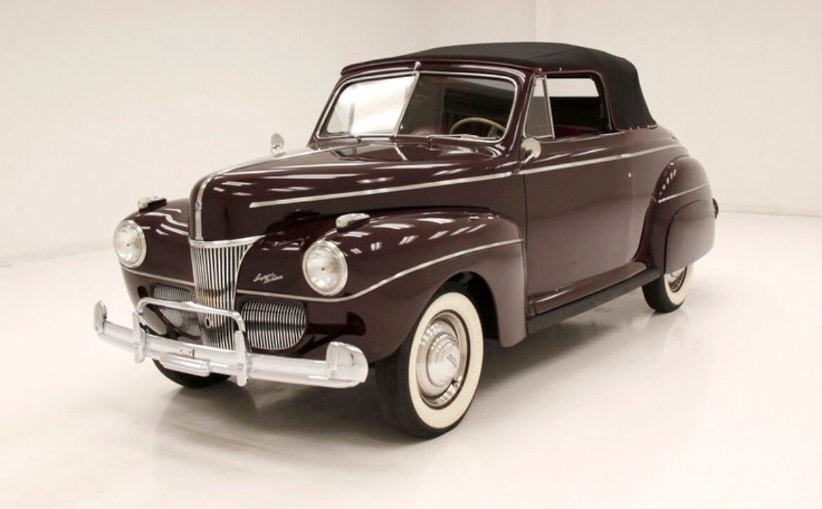 The 1941 Ford Super Deluxe Convertible is a testament to Ford’s remarkable craftsmanship during a pivotal era of automotive design. This elegantly styled vehicle boasts clean, rounded lines highlighted by delicate chrome accents, capturing the essence of that transformative time. Underneath the hood lies a 221ci flathead V8, reinforcing its power and reliability. The black canvas convertible top operates with smooth, electrically-assisted ease, ensuring your drives are both stylish and enjoyable.