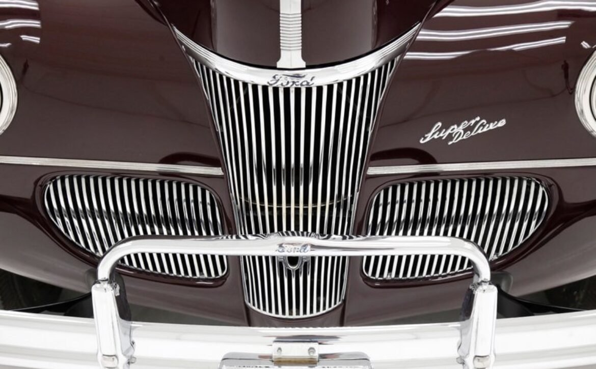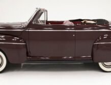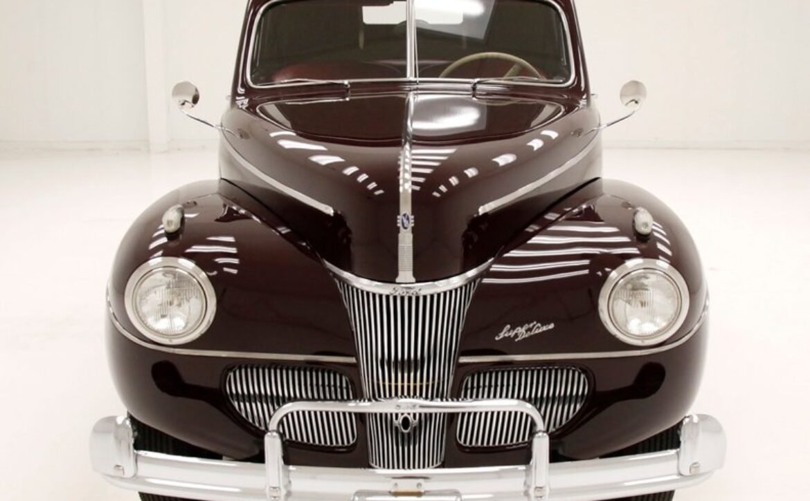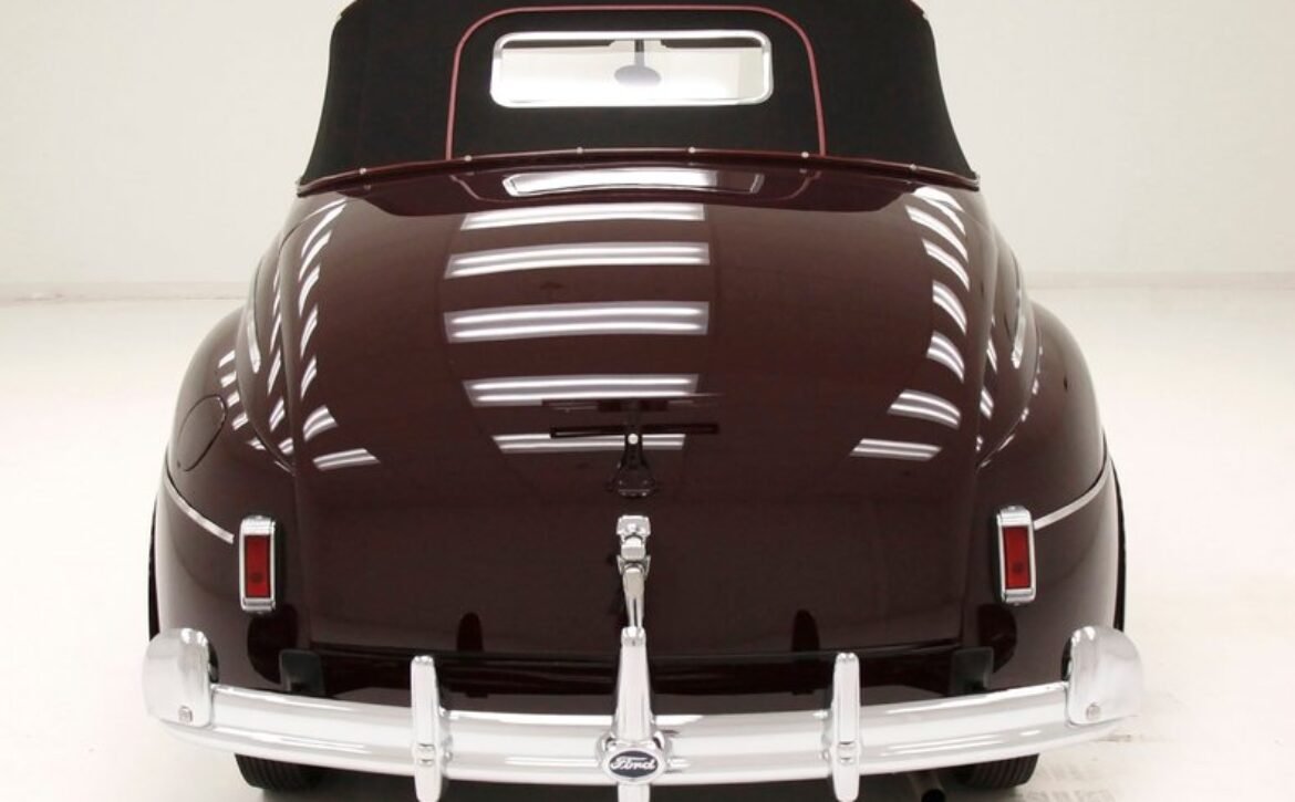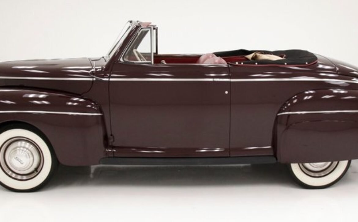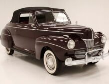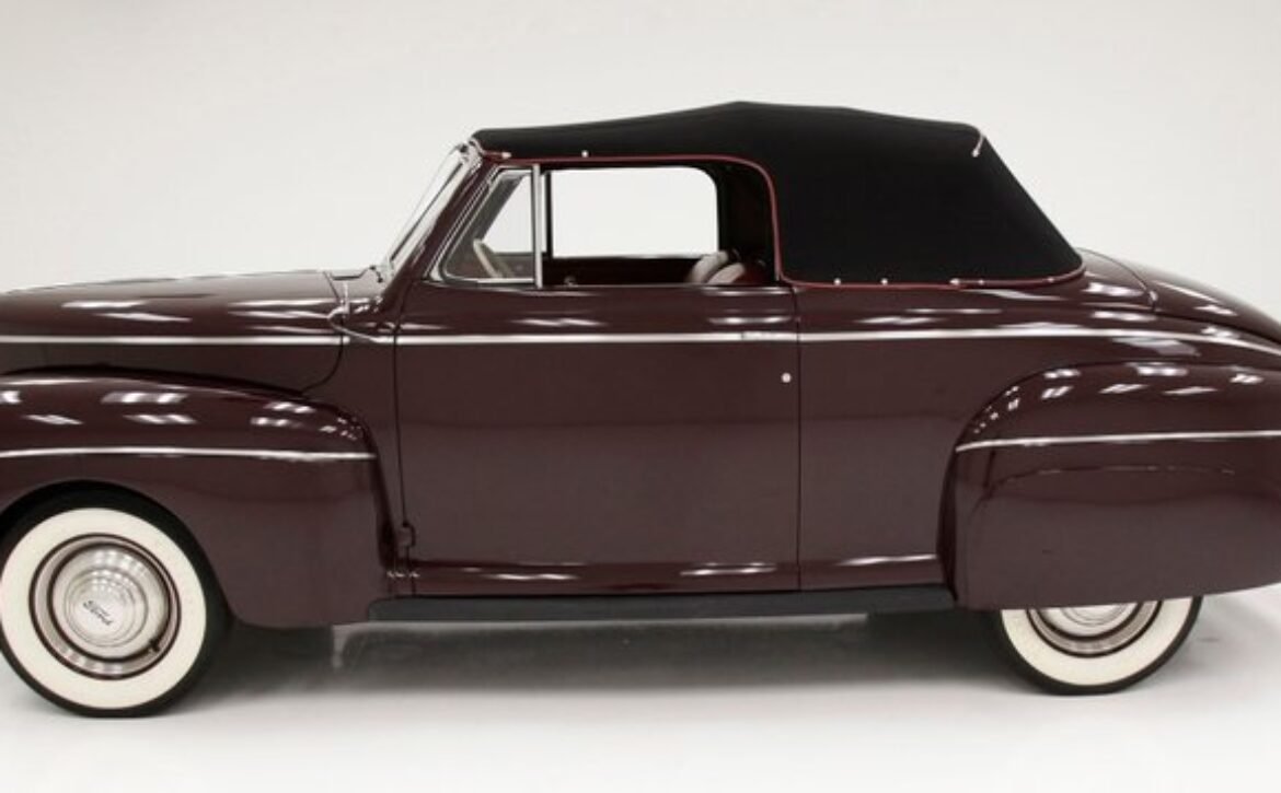 The 1941 Ford Super Deluxe Convertible is a testament to Ford’s remarkable craftsmanship during a pivotal era of automotive design. This elegantly styled vehicle boasts clean, rounded lines highlighted by delicate chrome accents, capturing the essence of that transformative time. Underneath the hood lies a 221ci flathead V8, reinforcing its power and reliability. The black canvas convertible top operates with smooth, electrically-assisted ease, ensuring your drives are both stylish and enjoyable.