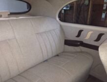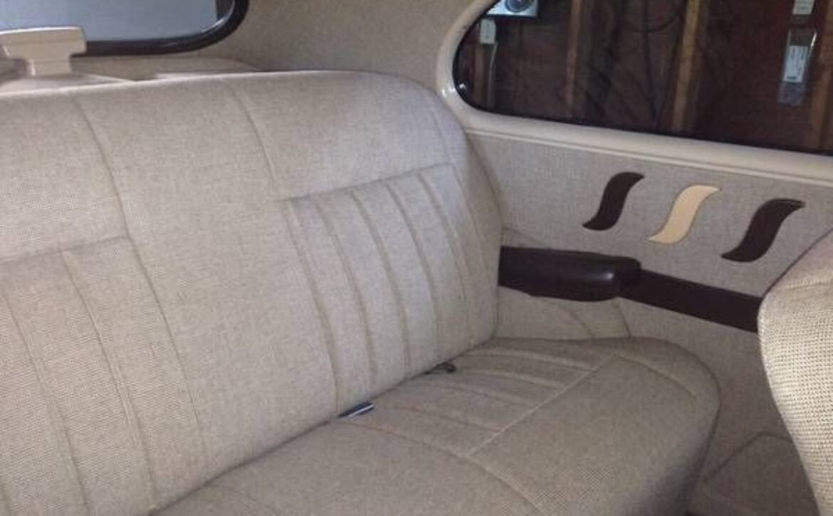 The exterior boasts a sleek black finish, complementing its timeless lines, while inside, you’ll find a tasteful beige tweed interior that echoes the car’s retro roots. The cabin provides a comfortable and sophisticated environment, making it ideal for leisurely drives or car shows.