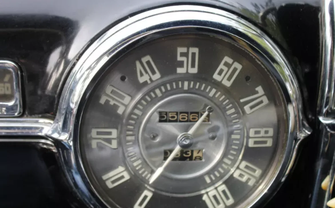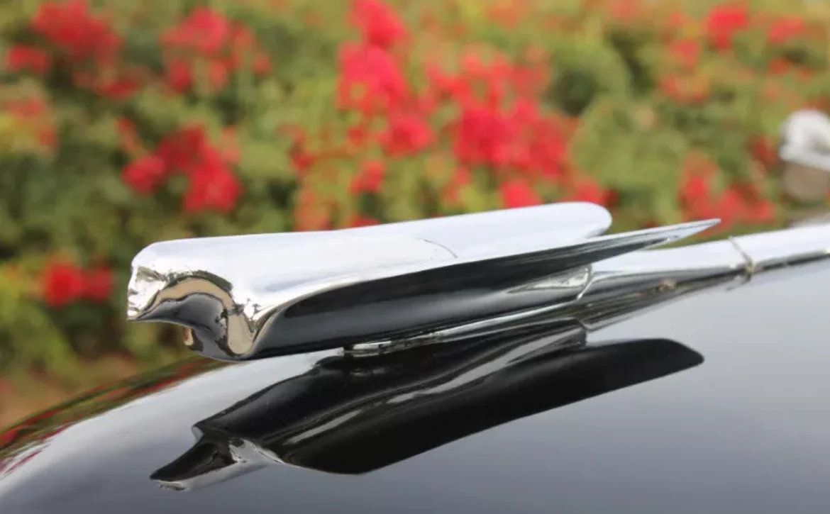 One of the car’s standout features is the hood ornament, which cleverly doubles as the hood latch mechanism—a unique and charming detail.