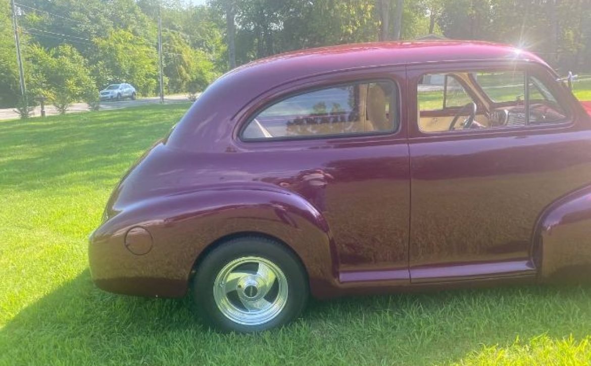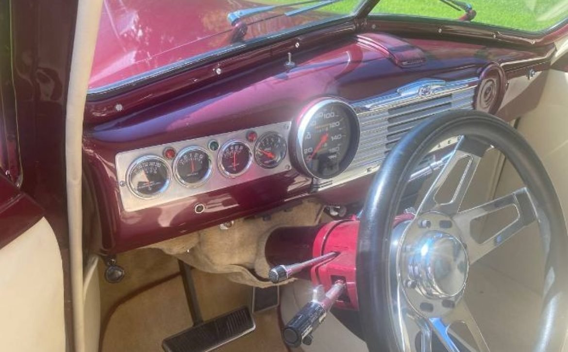 Under the hood, this Chevrolet Deluxe is powered by a robust 504 Big Block engine paired with a 350 Turbo transmission, delivering a thrilling driving experience. The inclusion of a Mustang 2 front end and Camero rear enhances the car’s handling, making it as smooth and responsive as any modern car.