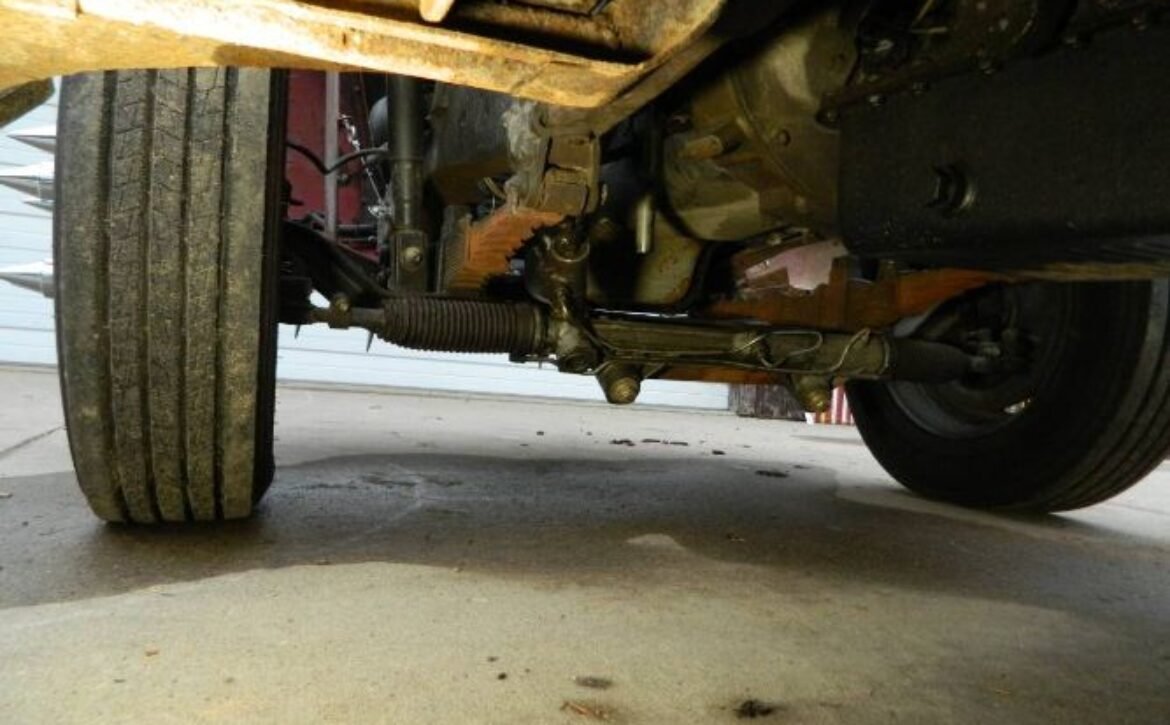 The rear end of the truck is equipped with a GM 14-bolt configuration, featuring 4.10 gears and dual shocks. It rides on super single semi wheels with polished aluminum rims and 445/55R22.5 Michelin tires, offering exceptional traction. The front setup includes a stock straight axle with newly integrated rack and pinion steering, paired with 5 bolt big pattern one-piece steel rims and new 225/70R19 tires.