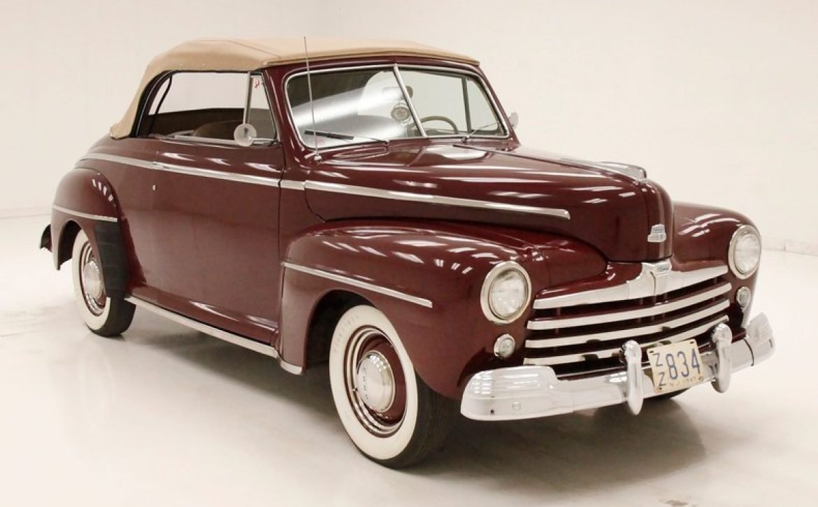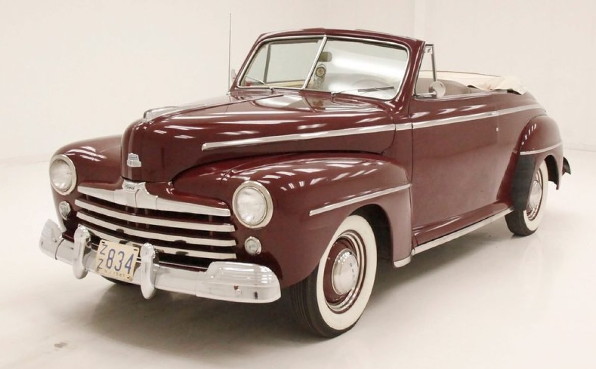 Experience timeless elegance with the 1947 Ford Super Deluxe Convertible, a classic offering in stunning Monsoon Maroon. This vehicle showcases the perfect blend of vintage charm and history, with an allure that continues to captivate car enthusiasts worldwide.