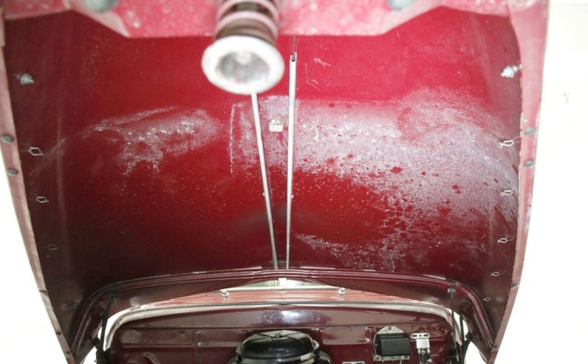 Under the hood lies a commanding 239ci V8 engine paired with a 3-speed manual transmission, delivering a thrilling drive reminiscent of the mid-20th century. The engine bay remains spotless, highlighting the extent of the restoration. The conversion to Pertronix electronic ignition brings added reliability, ensuring the car starts and runs smoothly every time.