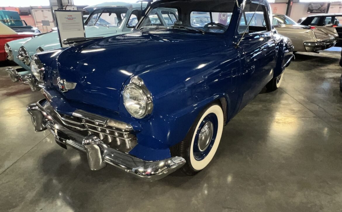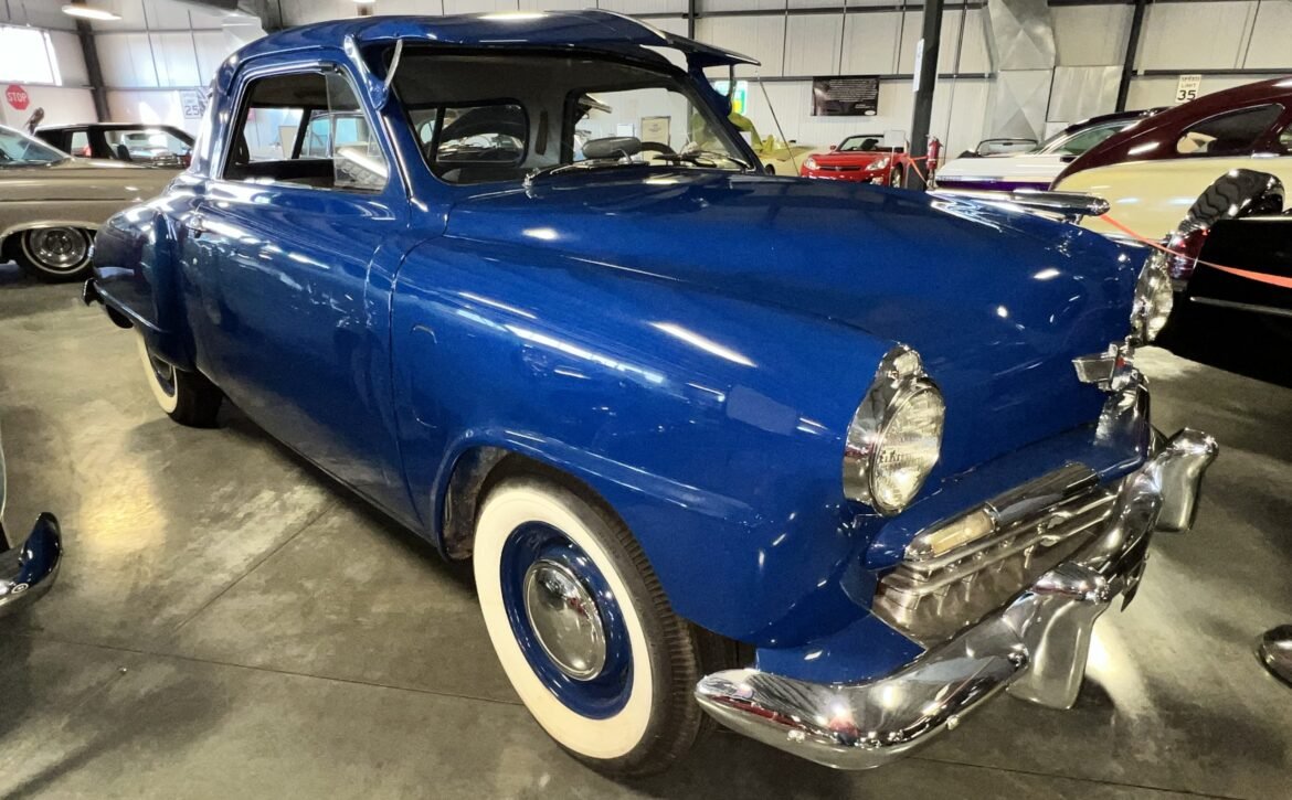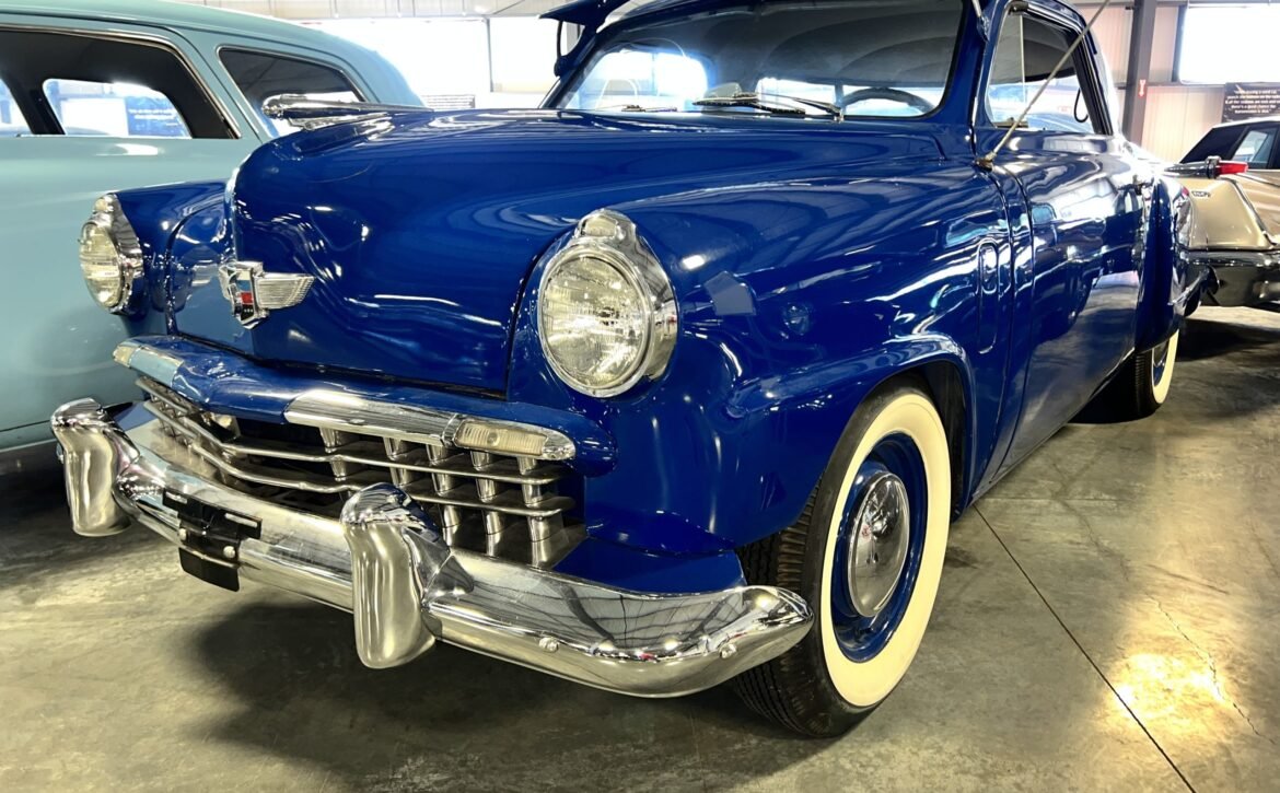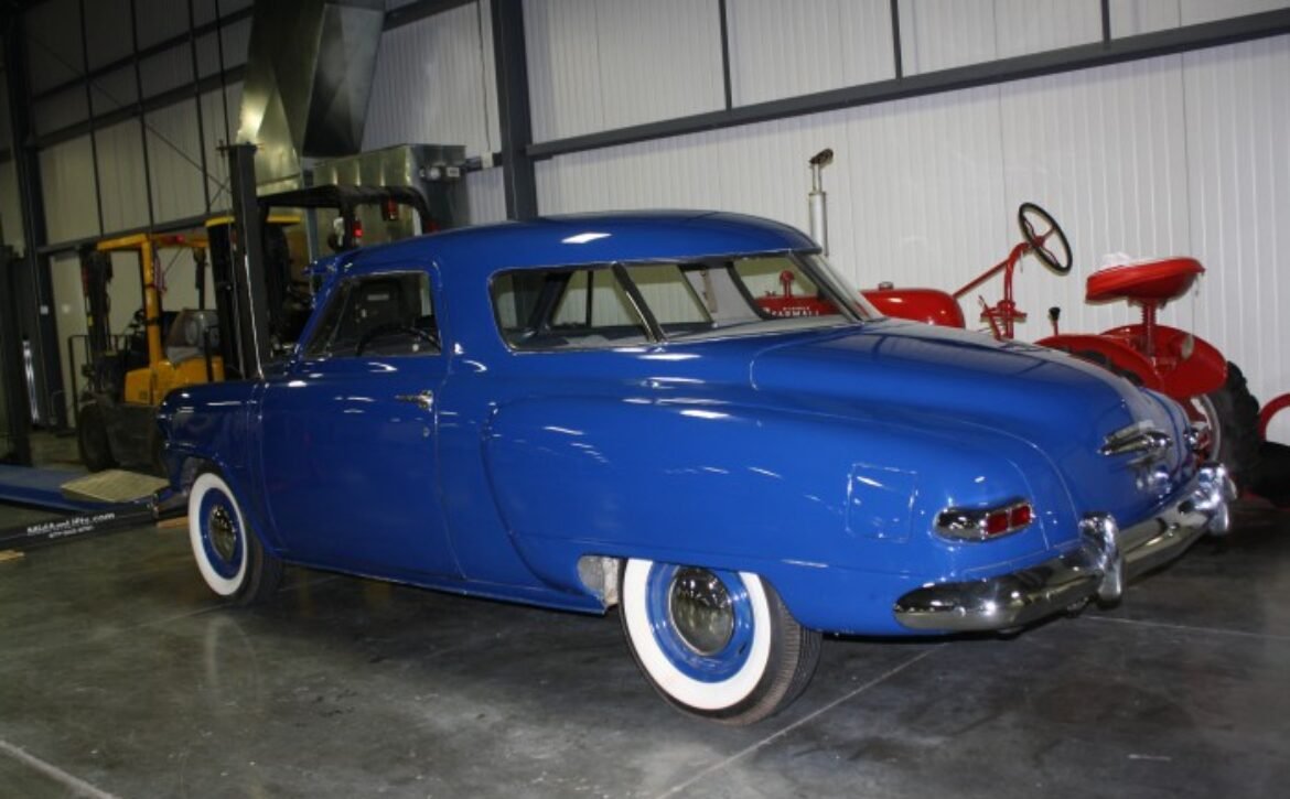 BlueExperience the Timeless Design: Introducing the remarkable 1949 Studebaker Starlite Coupe, a classic embodiment of unique automotive design. This beautiful blue, 2-door coupe is a prime example of Studebaker’s innovative spirit from the late 1940s to early 1950s.