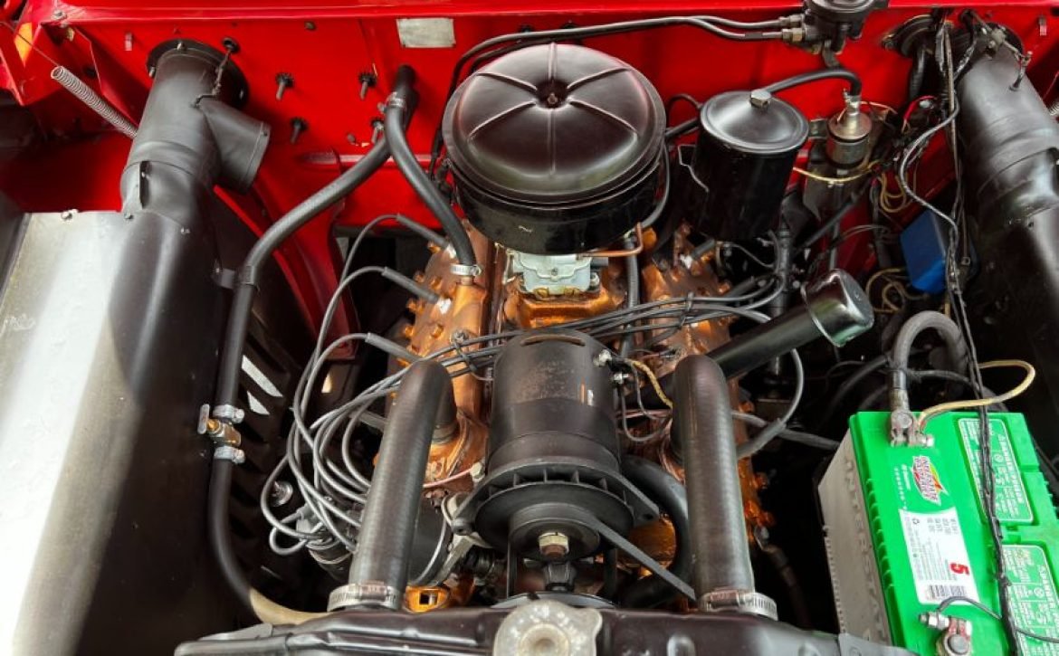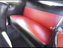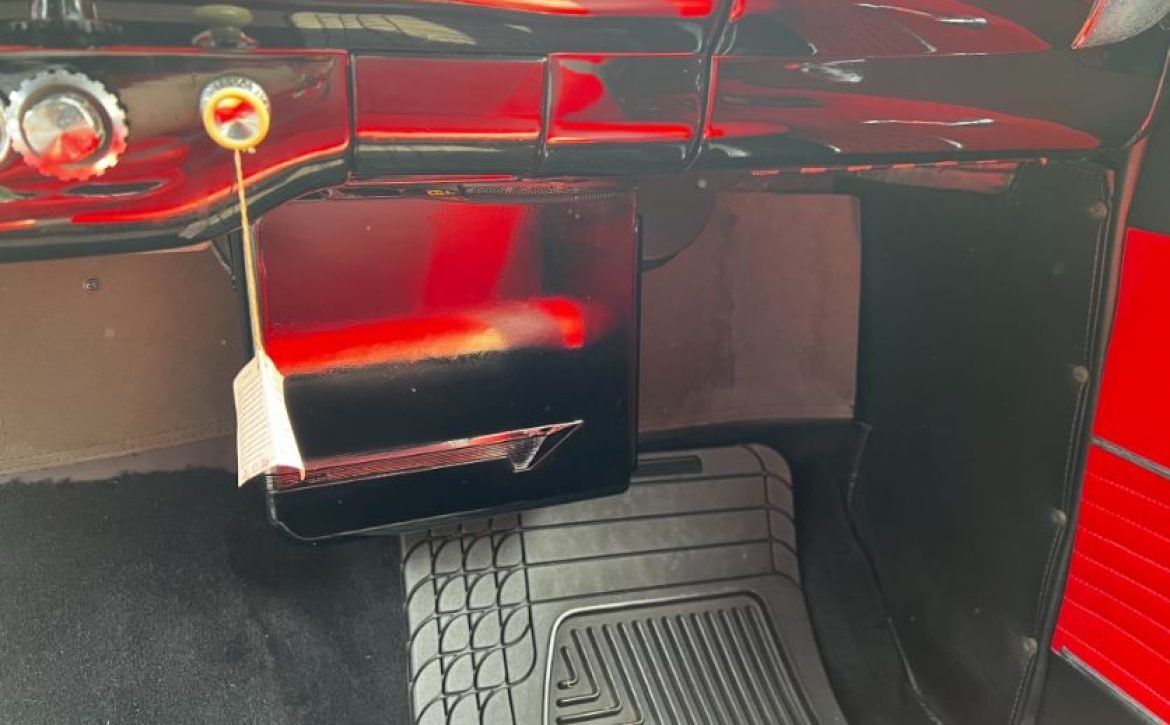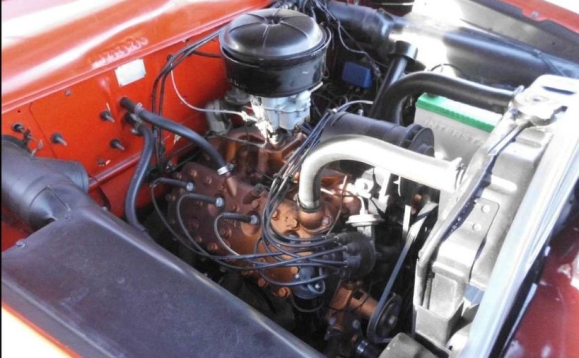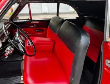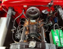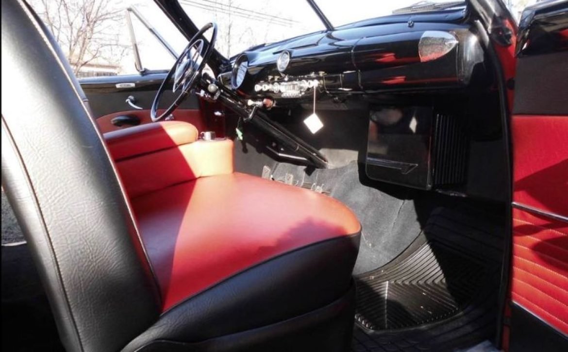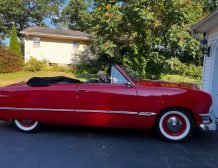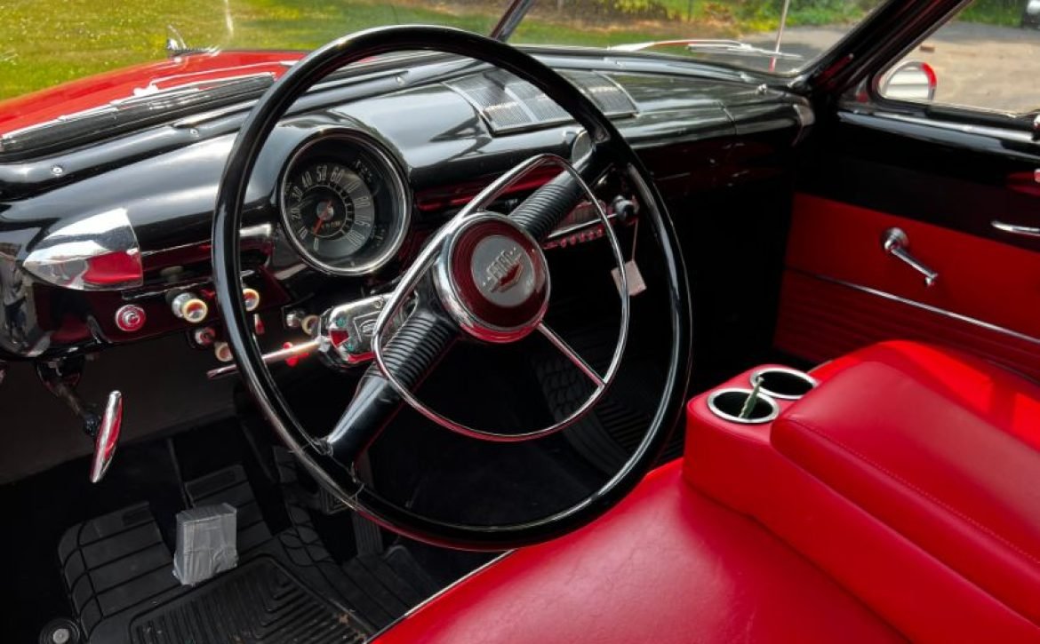 RedIntroducing the 1950 Ford Custom Convertible, a beautiful blend of vintage charm and robust performance. This classic car is finished in a striking red color complemented by a chic black canvas top, which adds to its timeless appeal. Step inside to be greeted by an elegant black and red interior that perfectly matches the exterior’s sophistication.