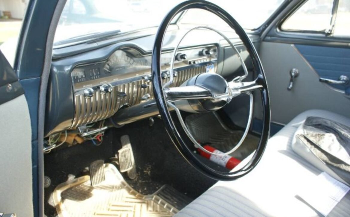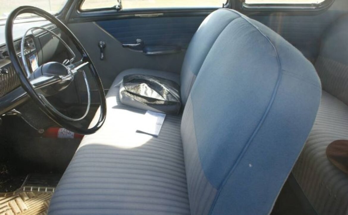 This classic car has been meticulously maintained and stored indoors, ensuring its excellent condition over the years. The original engine, which was damaged, was replaced with a 239 Flathead V8 short block, incorporating the original Mercury heads, intake, and pan. Estimated to develop about 105 HP, the engine runs smoothly with a single 2-barrel carburetor. The 3-speed manual transmission, equipped with overdrive, allows for pleasant highway cruising.
