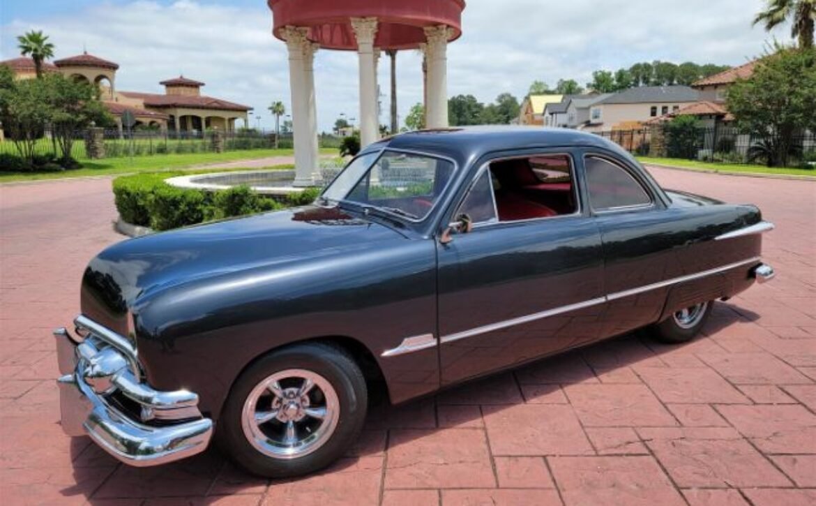 BlackExperience the timeless allure of the 1951 Ford Custom Deluxe Coupe, a classic vehicle cherished by automotive enthusiasts and collectors alike. This stunning model, with only 1,000 miles on its build, seamlessly marries vintage charm with modern enhancements.