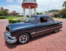 This 1951 beauty is equipped with power windows, digital gauges, and vintage air conditioning, ensuring a comfortable driving experience without sacrificing its classic essence. The exterior showcases timeless style with aftermarket wheels and expertly shaved door handles, maintaining its factory aesthetic while introducing elegant upgrades.