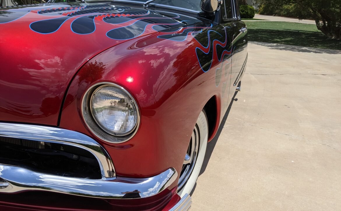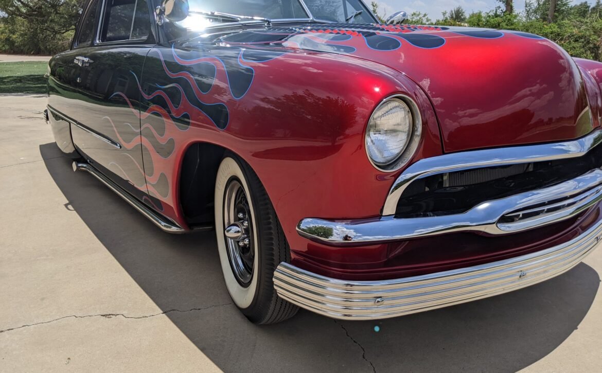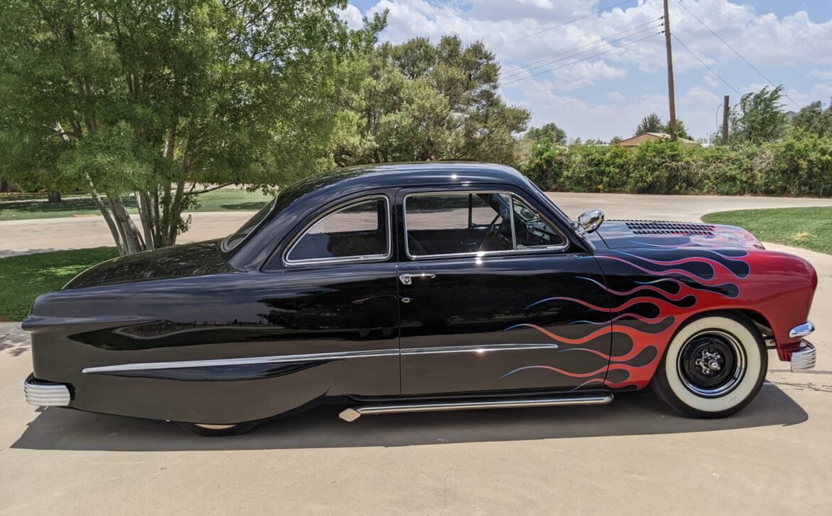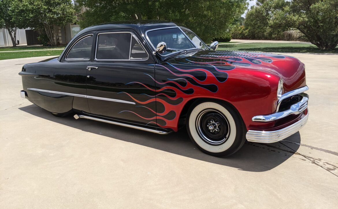 This 1951 Ford Custom is a remarkable example of vintage automotive style with its striking old-school flame job. It’s a true head-turner on the road, offering a bold and classic appearance that enthusiasts and collectors can appreciate.