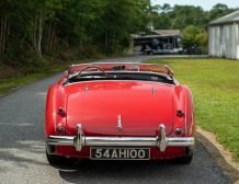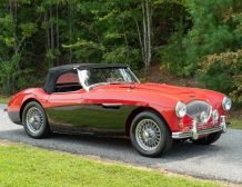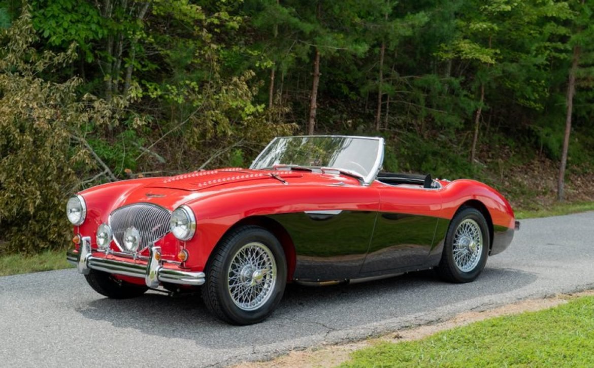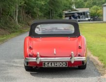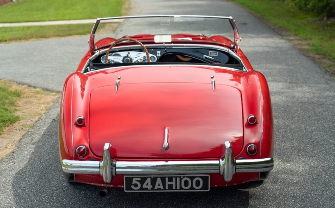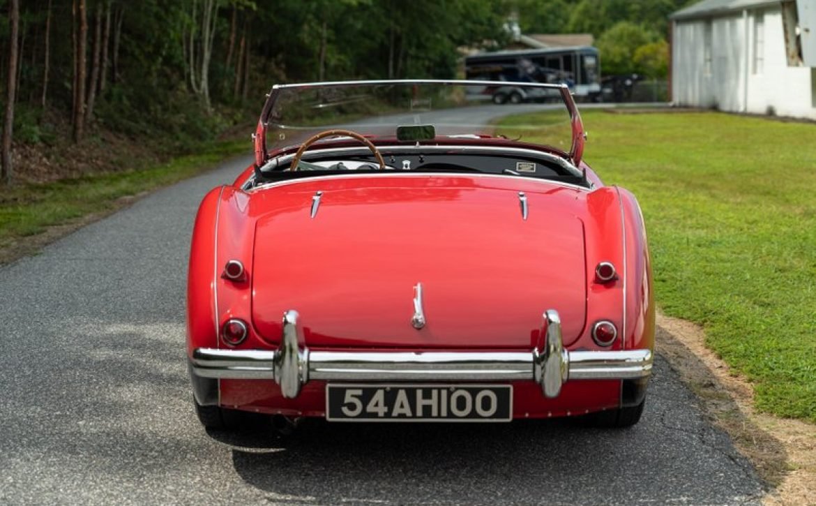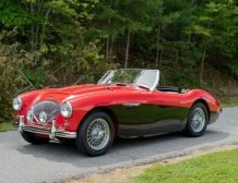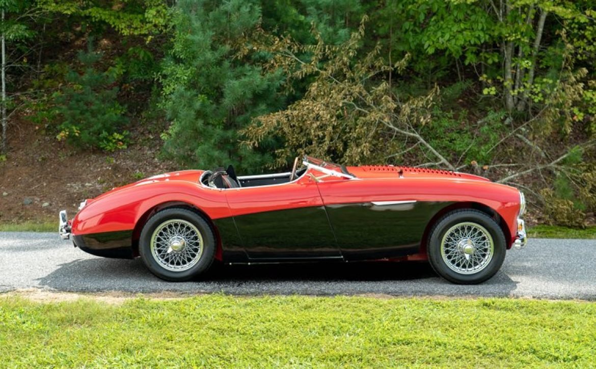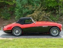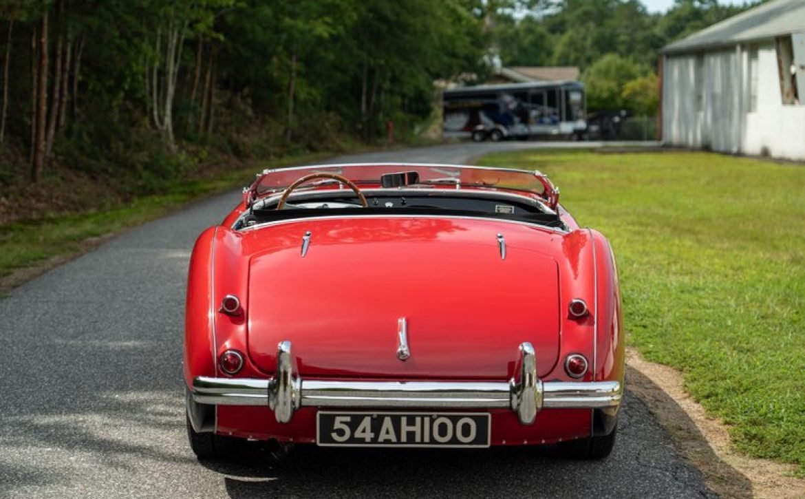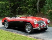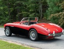 This classic 1954 Austin-Healey 100 BN1 roadster is a stunning example of vintage automotive elegance. The car underwent a thorough refurbishment in 2017, where it was repainted in a captivating two-tone red over black finish. This unique color combination is further enhanced by chrome accents, lending a touch of sophistication and style.