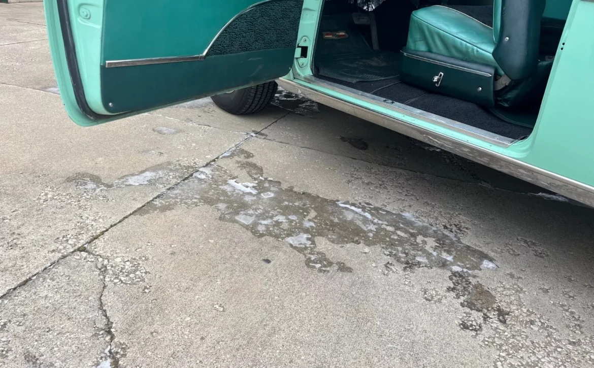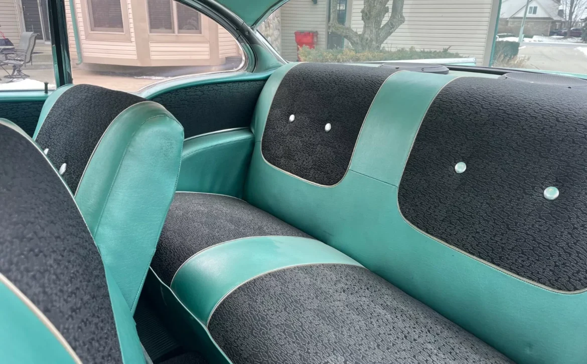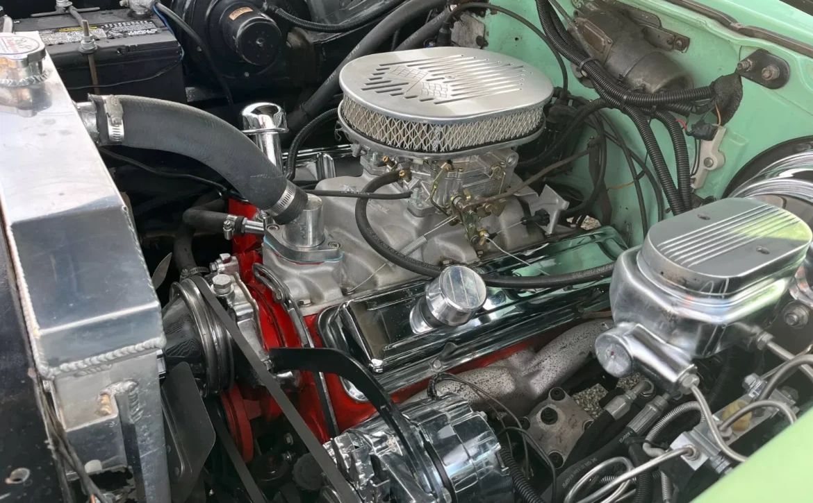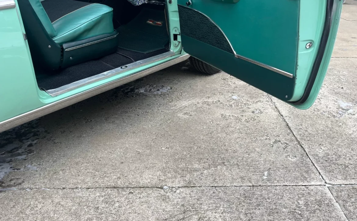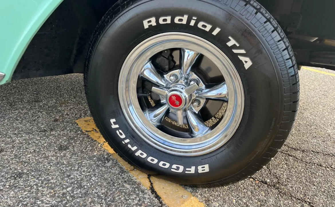 Repaint: The car has been repainted in its original Surf Green color, with a great shine and a straight body. There are a few minor flaws from being driven, but overall, the paint presents very well.