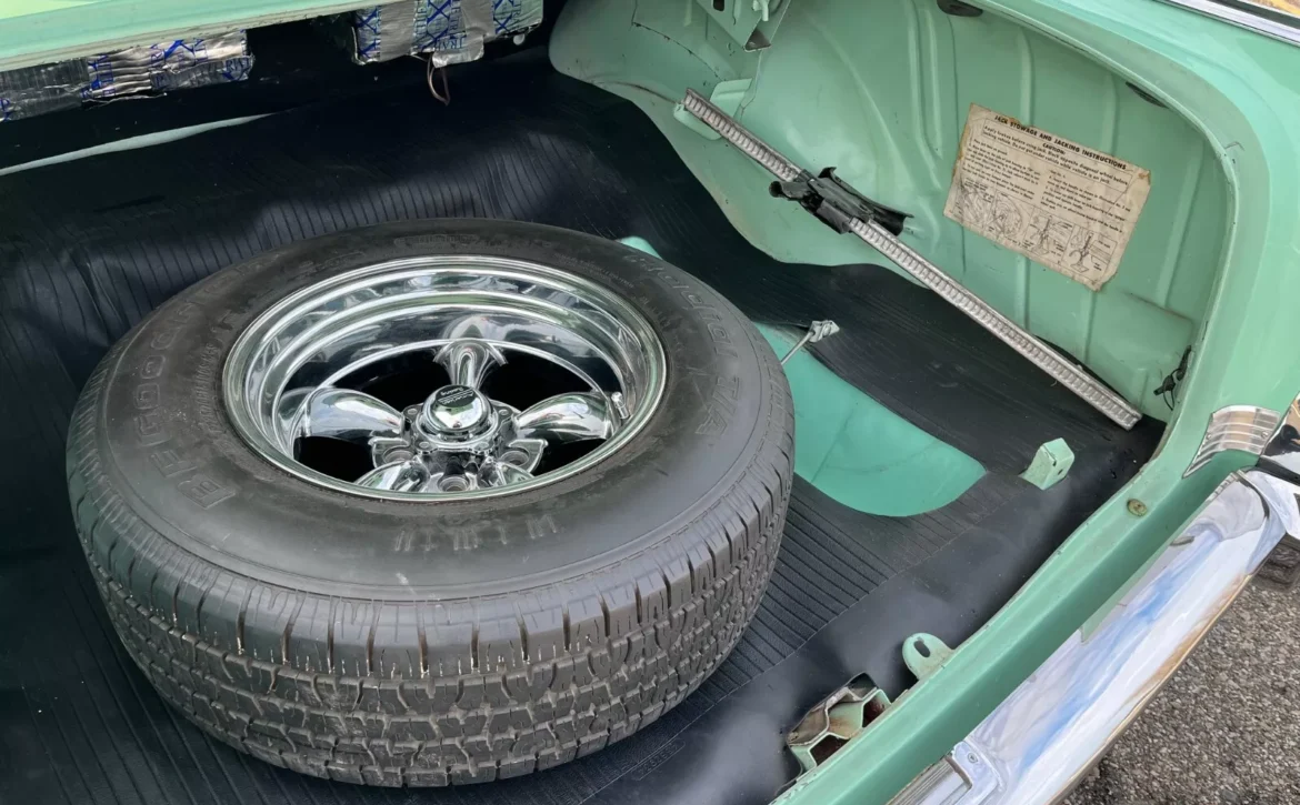 Trunk: The trunk is in great shape and still retains the original paint, along with the spare tire and jack.
