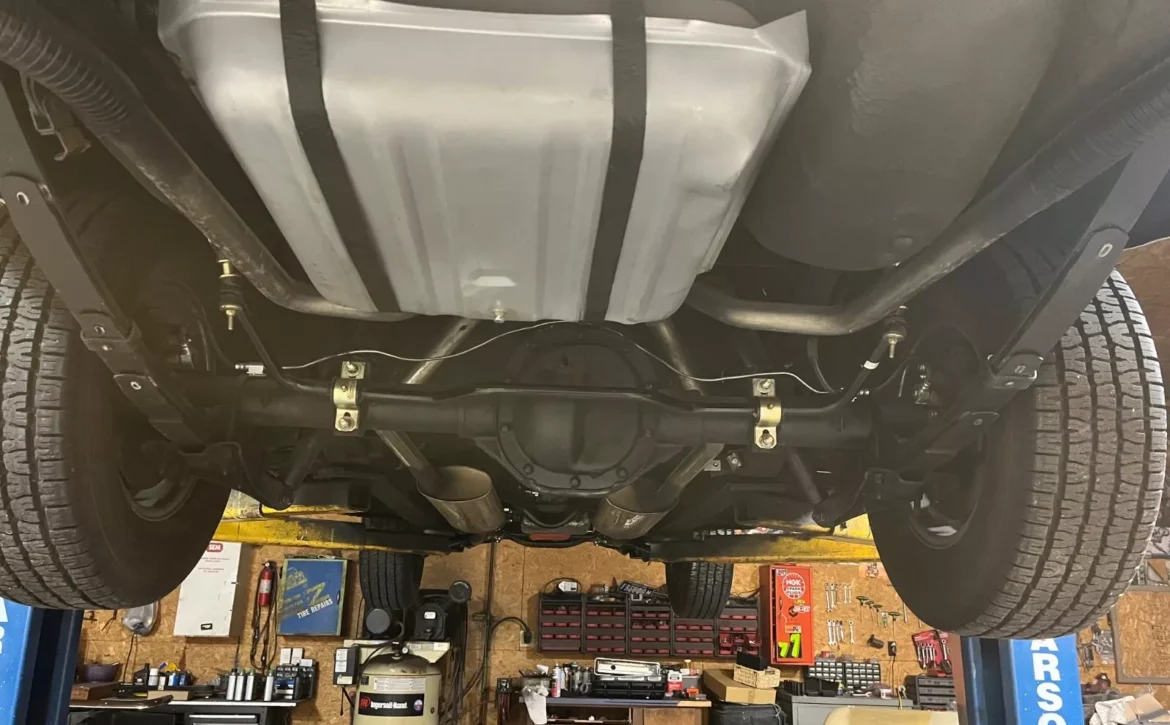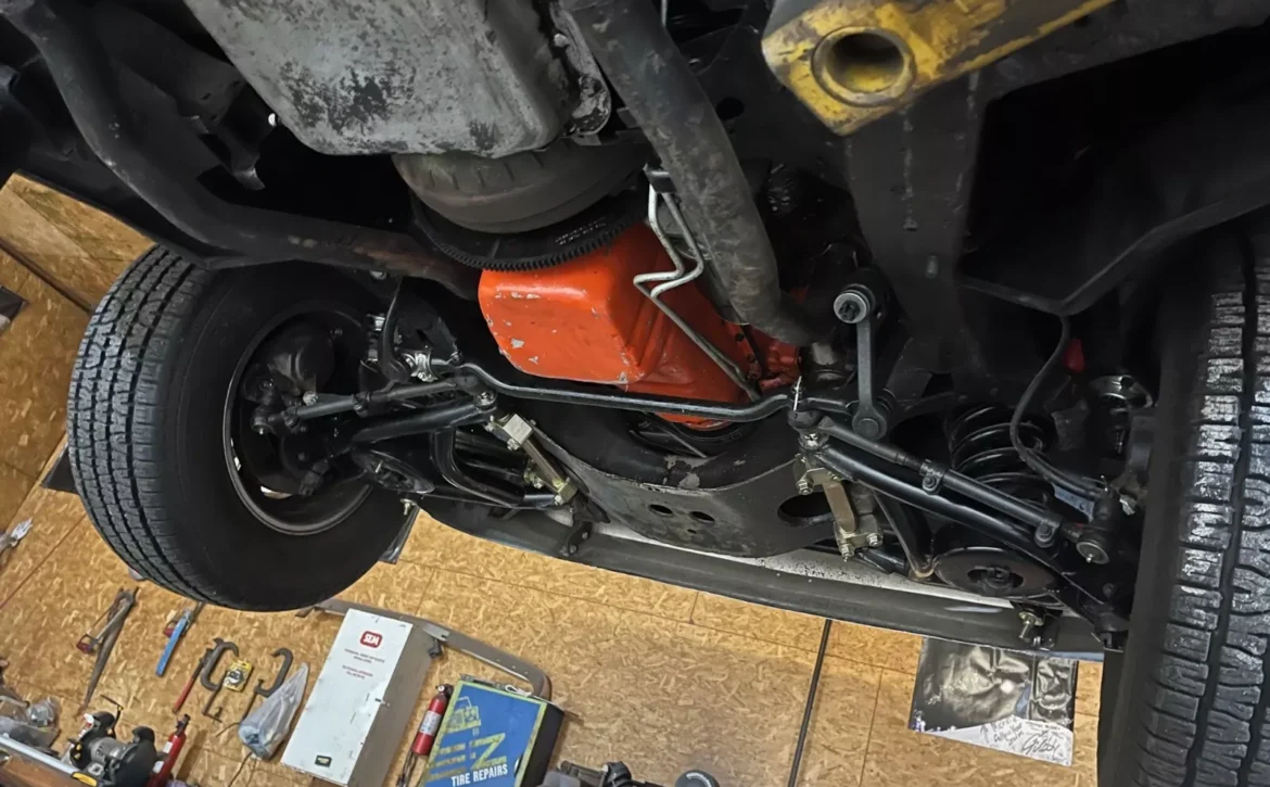 The rear suspension is brand new with a sway bar and an 8 3/4 rear end, ensuring a smooth ride and solid performance.
