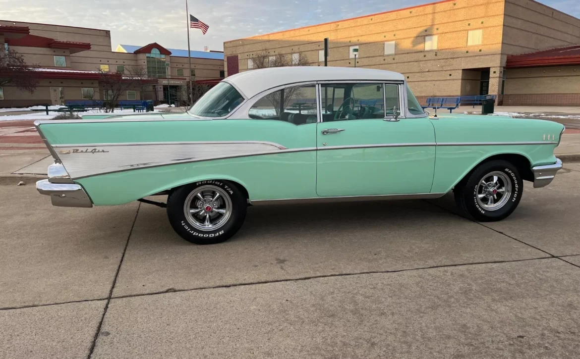 This 1957 Chevrolet Bel Air 2-Door Coupe Hardtop is a classic beauty, offering a solid, original body with a few modern upgrades. Finished in the rare Surf Green, this car is a real head-turner wherever you go. It’s powered by a rebuilt 283 4-barrel engine and features many performance and comfort upgrades for a smooth, enjoyable driving experience.