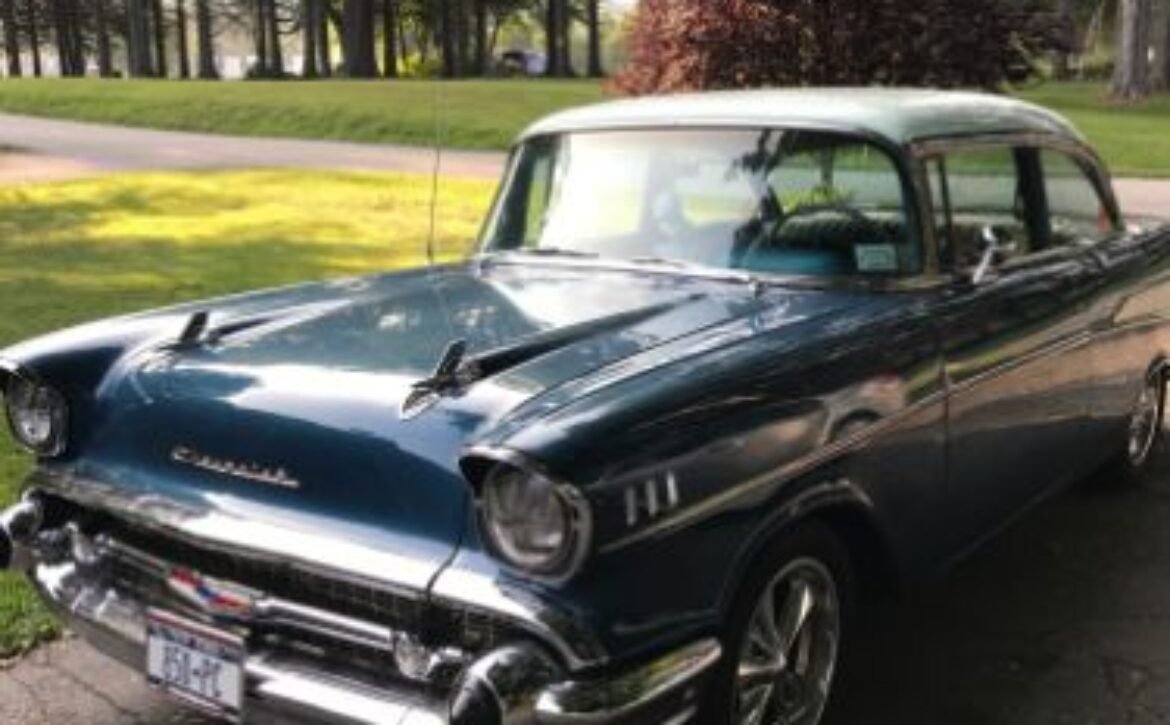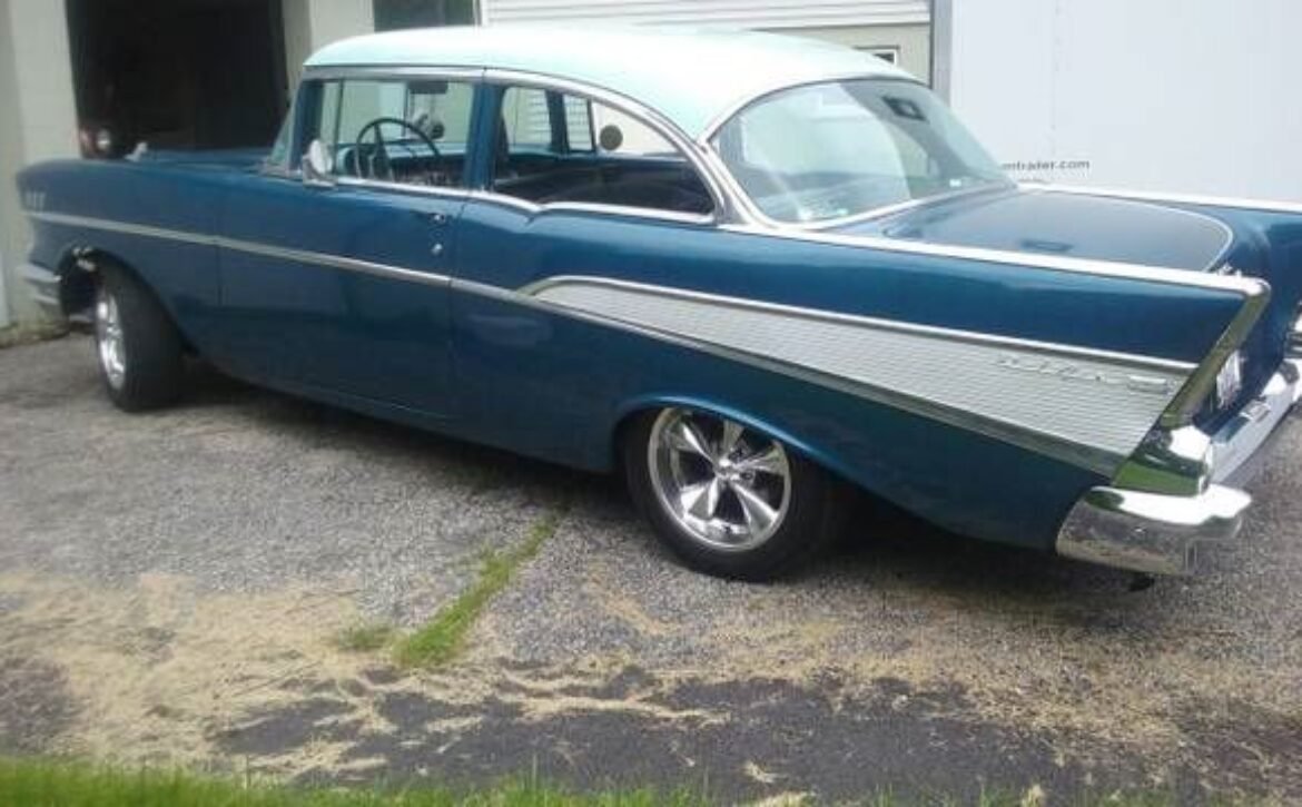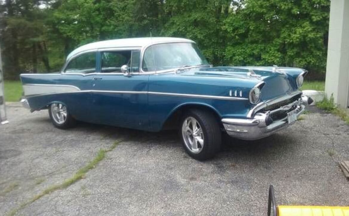 BlueThis 1957 Chevrolet Bel Air, a classic American icon, is now available for sale. This beautifully preserved piece of automotive history boasts a vibrant blue finish that was repainted 12 years ago and remains in commendable condition.