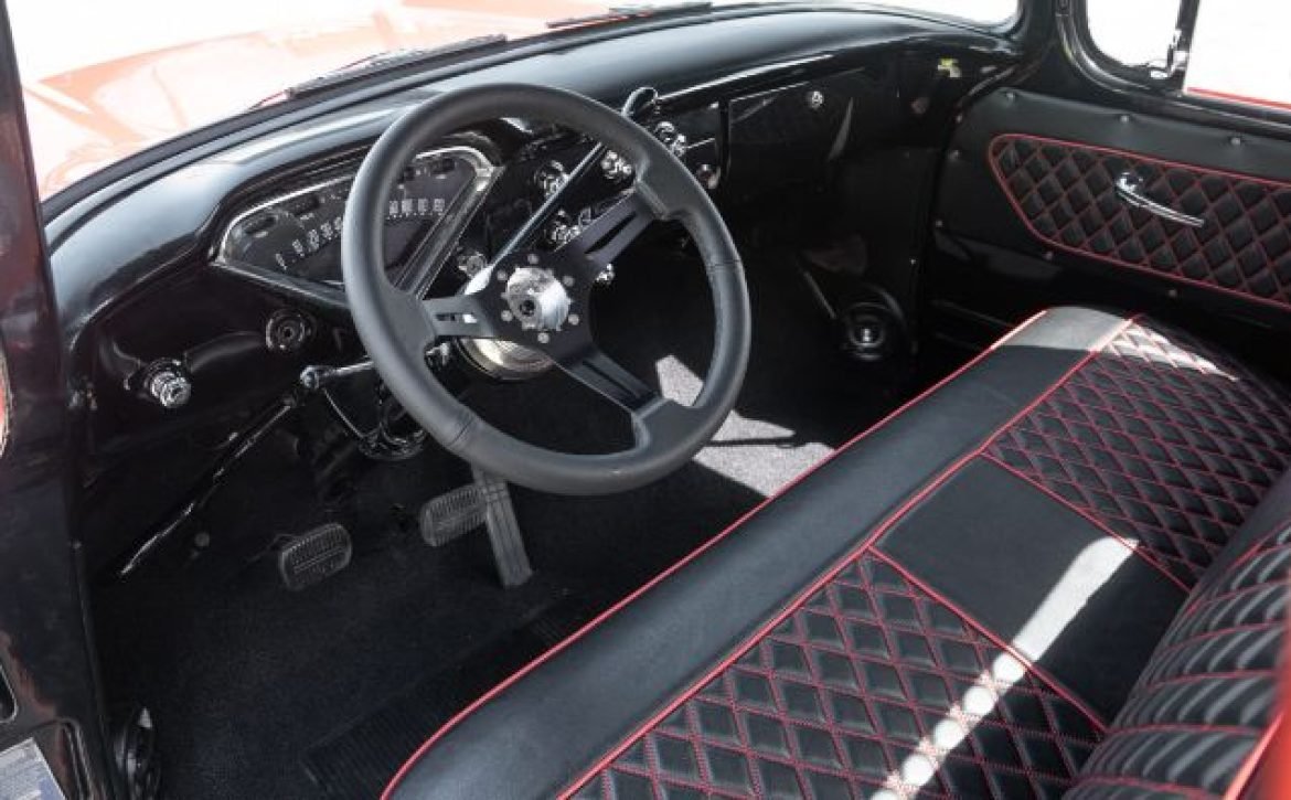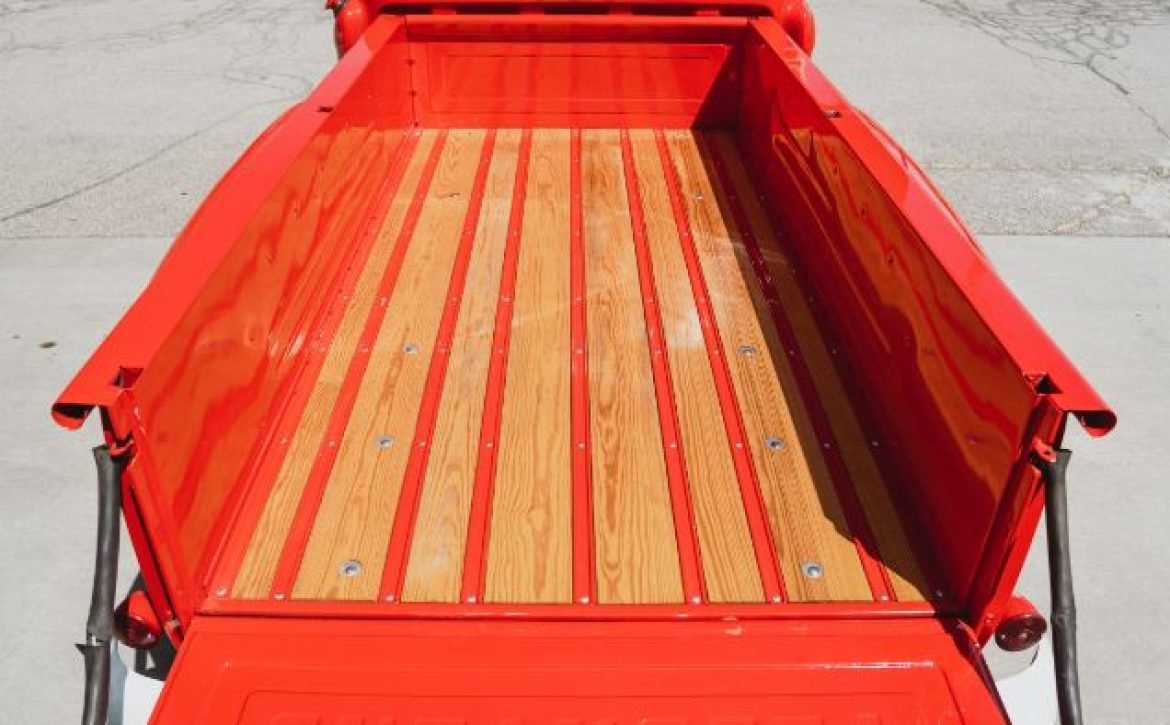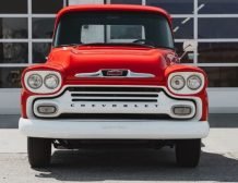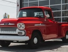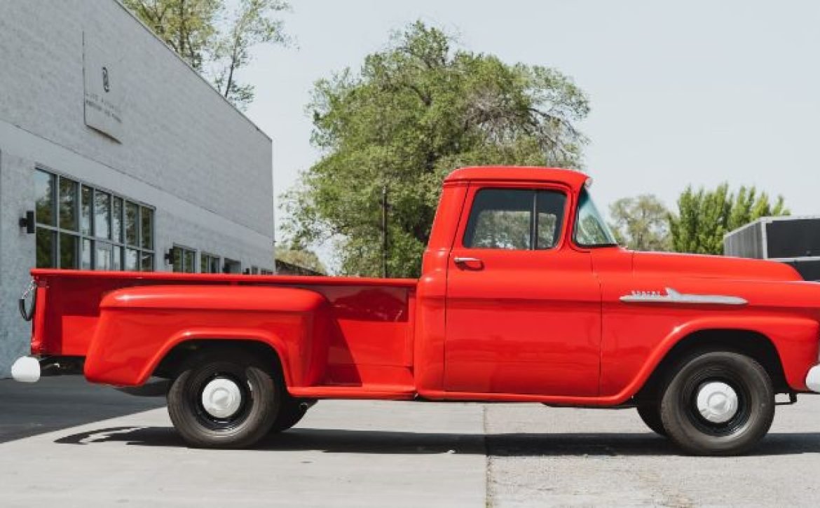 This 1958 Chevrolet Apache 32 Small-Window Stepside Pickup is a classic piece of automotive history. Featuring striking red exterior paint paired with a meticulously refinished black leather interior accentuated by tasteful red stitching, this truck is a visual delight.