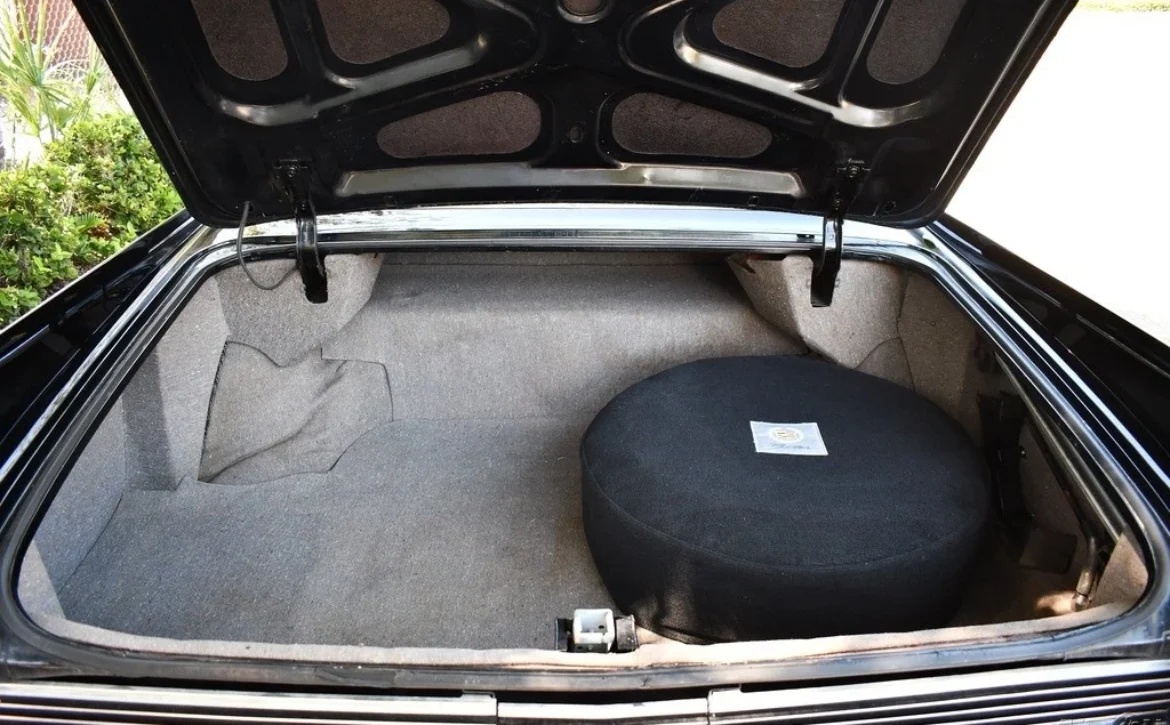Exterior: Iconic Cadillac fins, original black paint with stunning fit and finish