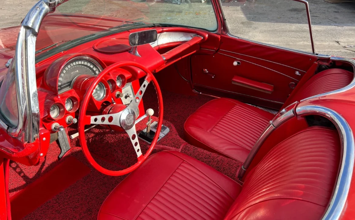 RedThis 1962 Corvette is a great candidate for restoration. The body is straight, the frame is solid, and the car has nice paint and interior. It does require a full mechanical restoration and does not currently run. It is equipped with a 350 motor and a 4-speed transmission. While the car doesn’t run, it rolls and steers without issue.