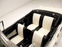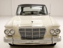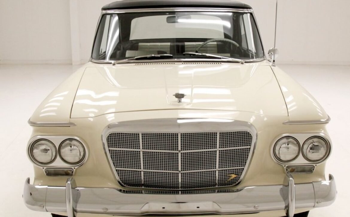 Step inside to be greeted by a classy 1960s design. The interior showcases black and white door panels with shiny handles, complemented by low-back wide bucket seats featuring smooth vinyl inserts. The rear bench mimics the front seats in design and condition. Delicate wood grains and chrome details adorn the faux wood grain dash, where you’ll find round gauges and original dash features. The well-maintained black carpeting and ribbed stitched vinyl rear seat backs elevate the car’s interior to a level of “swanky” that only a Studebaker can deliver.