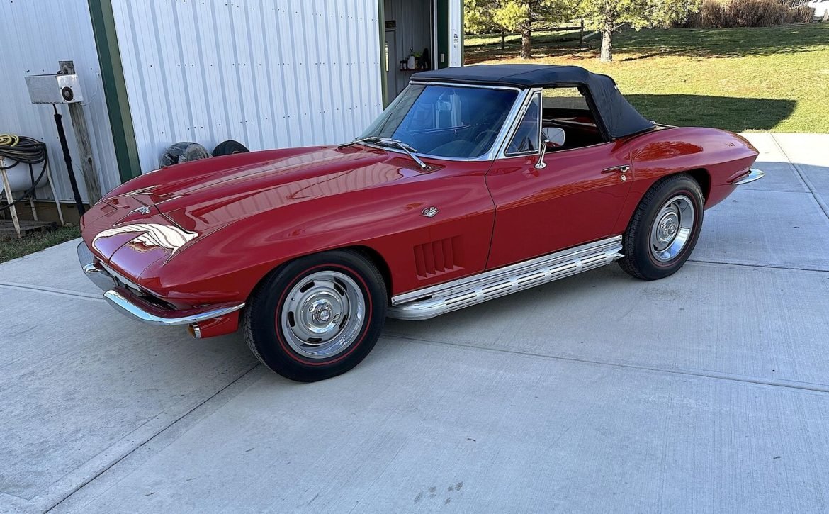 Presenting a stunning 1964 Corvette Convertible featuring a powerful 327 engine and a 4-speed manual transmission. This classic car is finished in beautiful factory-correct Riverside Red, paired with a sleek black interior and a like-new black convertible top.