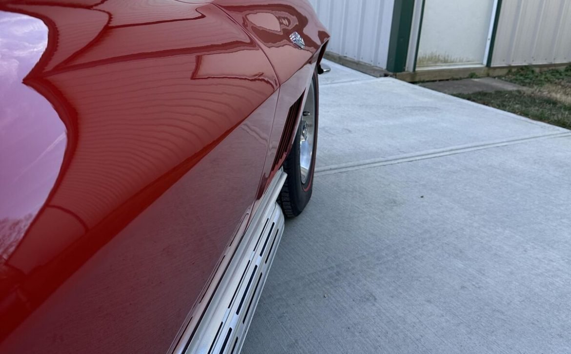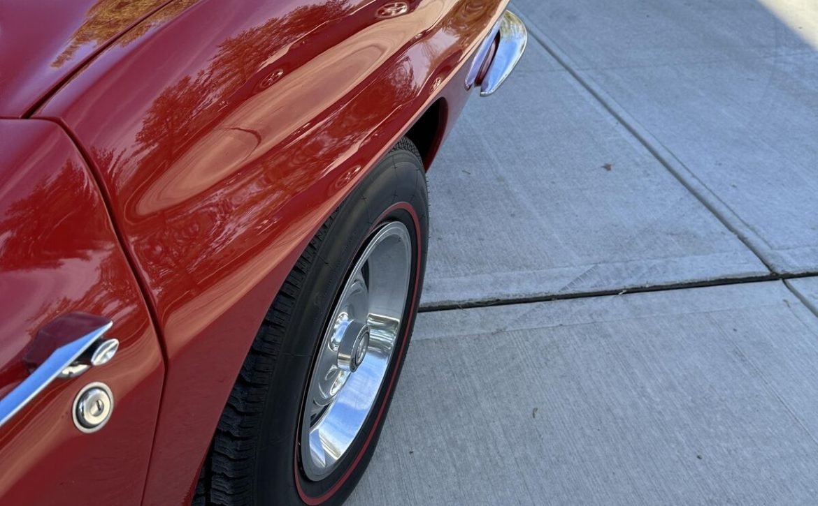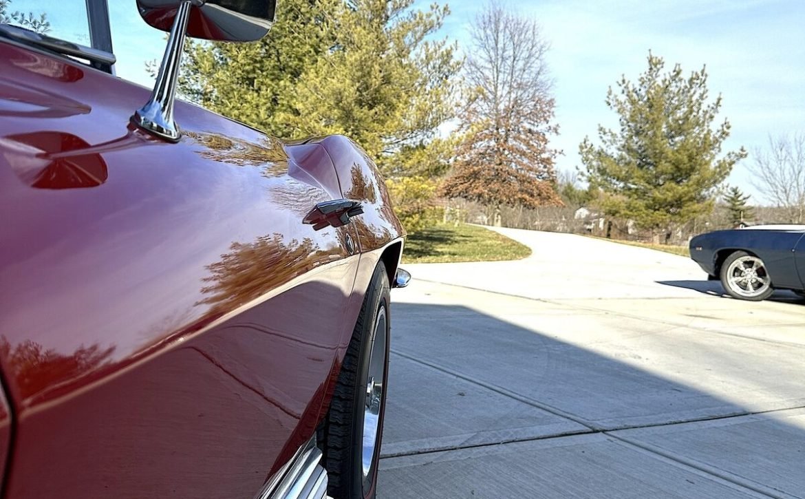 - Exterior: New, high-quality Riverside Red paint that has been buffed to a mirror-like shine. The paint is deep and radiant, enhancing the car’s classic appeal.