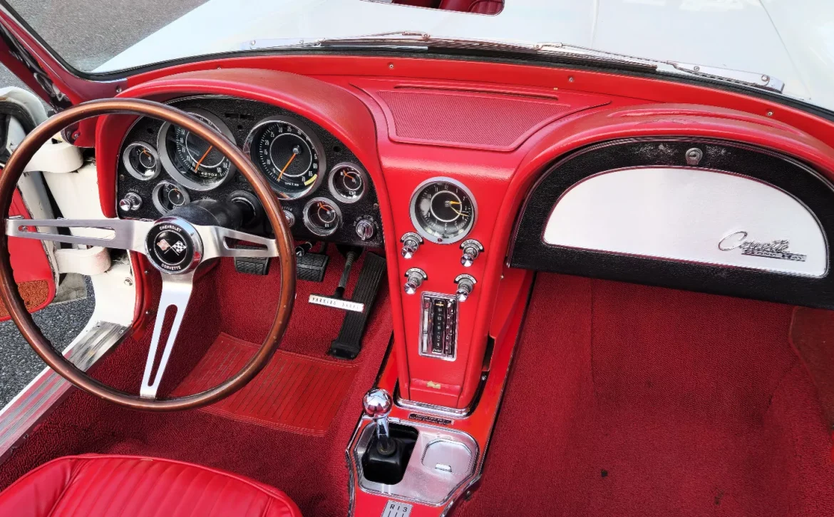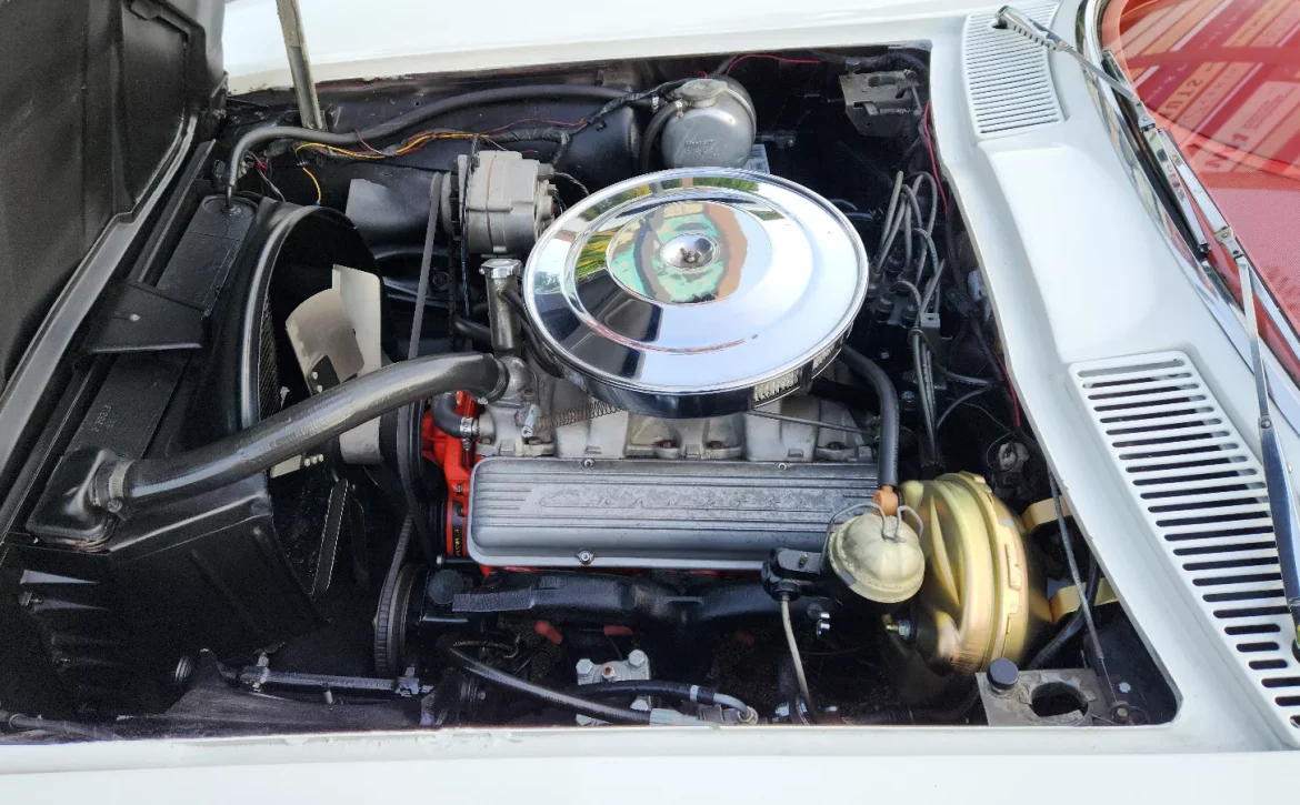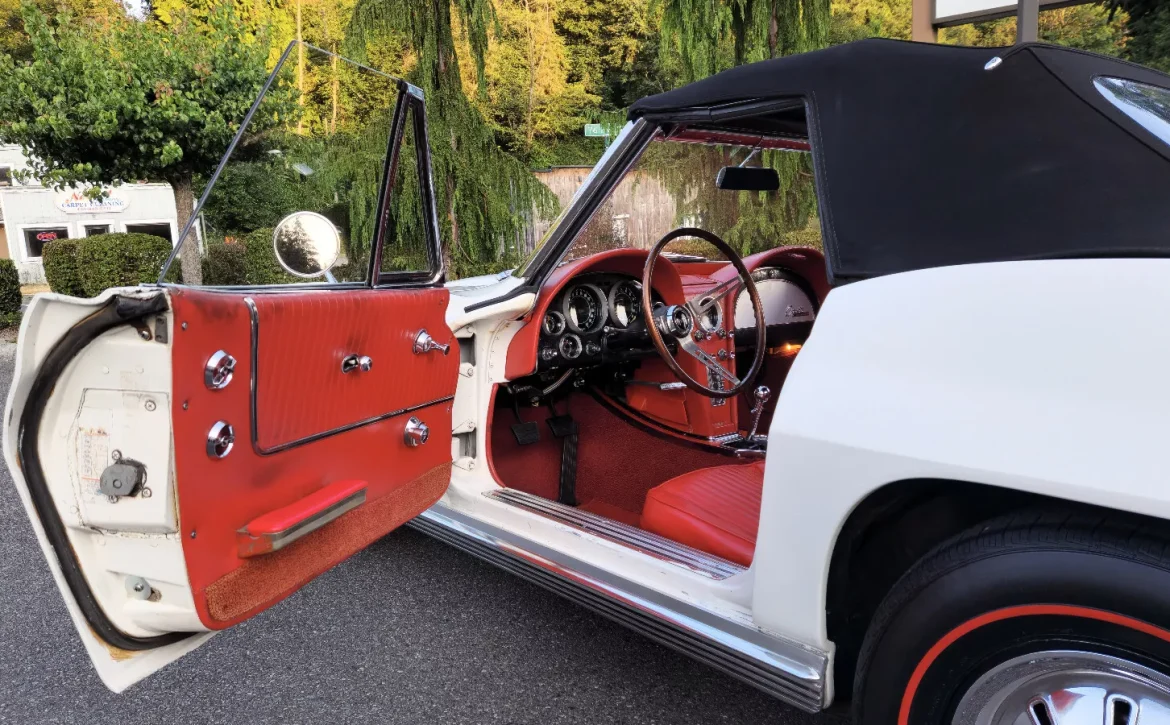This 1964 Chevrolet Corvette Roadster is a stunning example of American automotive history. Finished in Ermine White with a bright red interior, this classic is powered by the L-76 365 h.p. solid lifter 327 engine, making it one of the most desirable Corvettes of its era.