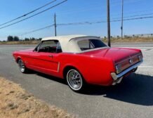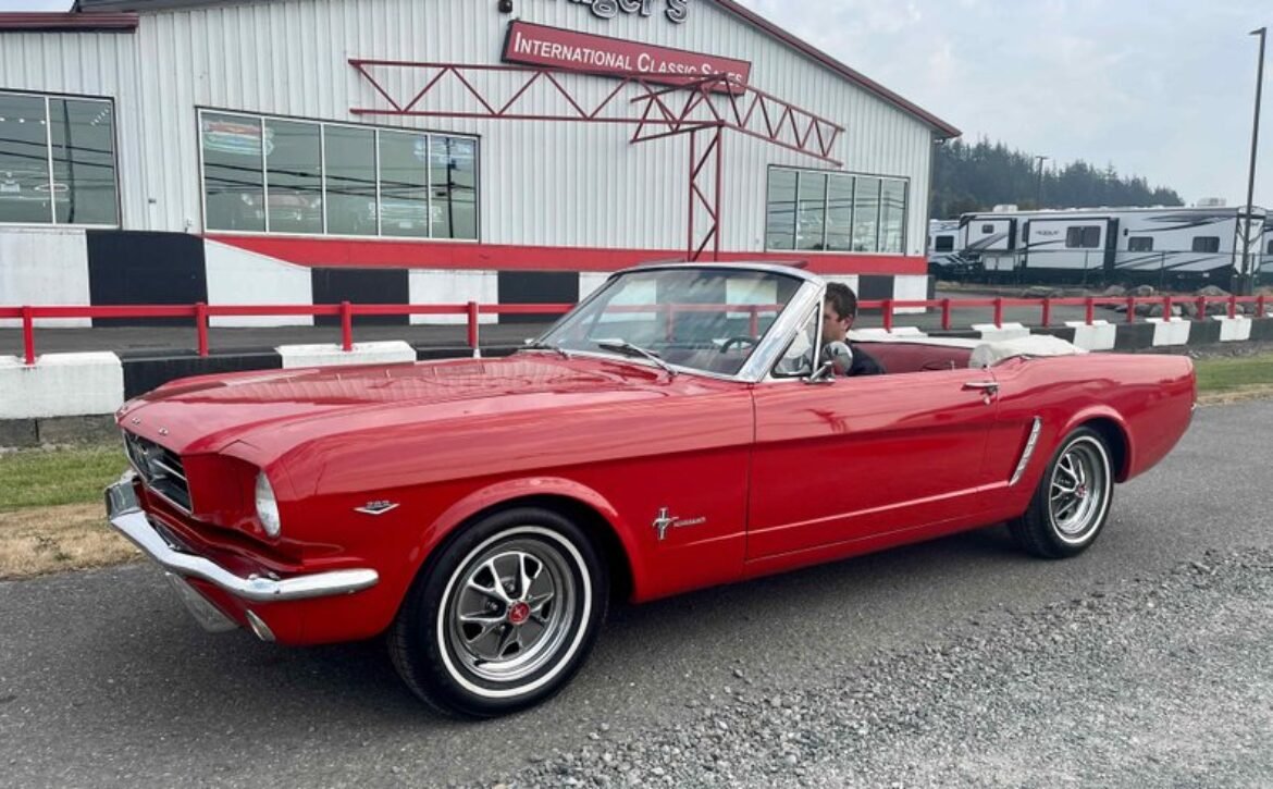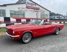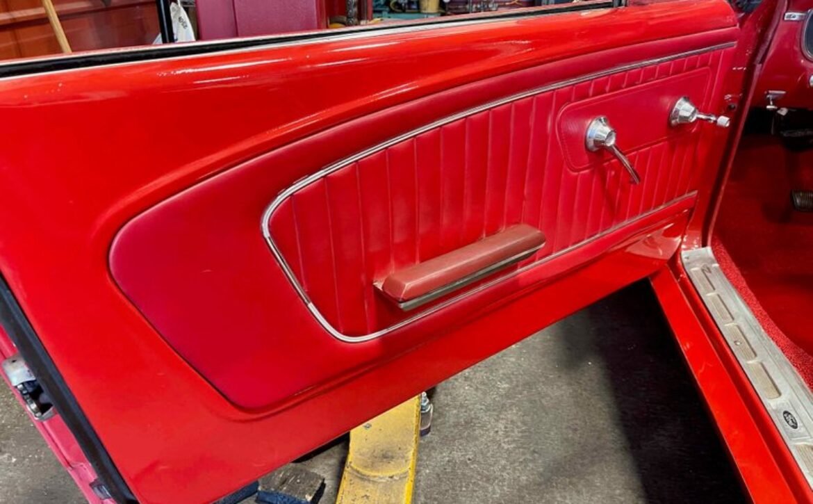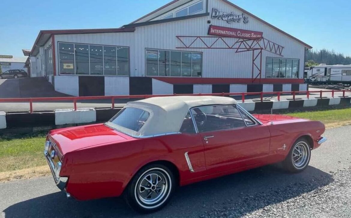 Experience a piece of automotive history with this 1964 1/2 Ford Mustang Convertible. This classic car is in exceptional condition and stands as a testament to Ford’s commitment to performance and style. The captivating Poppy Red exterior finish is complemented beautifully by a matching red vinyl interior, making it a true eye-catcher.