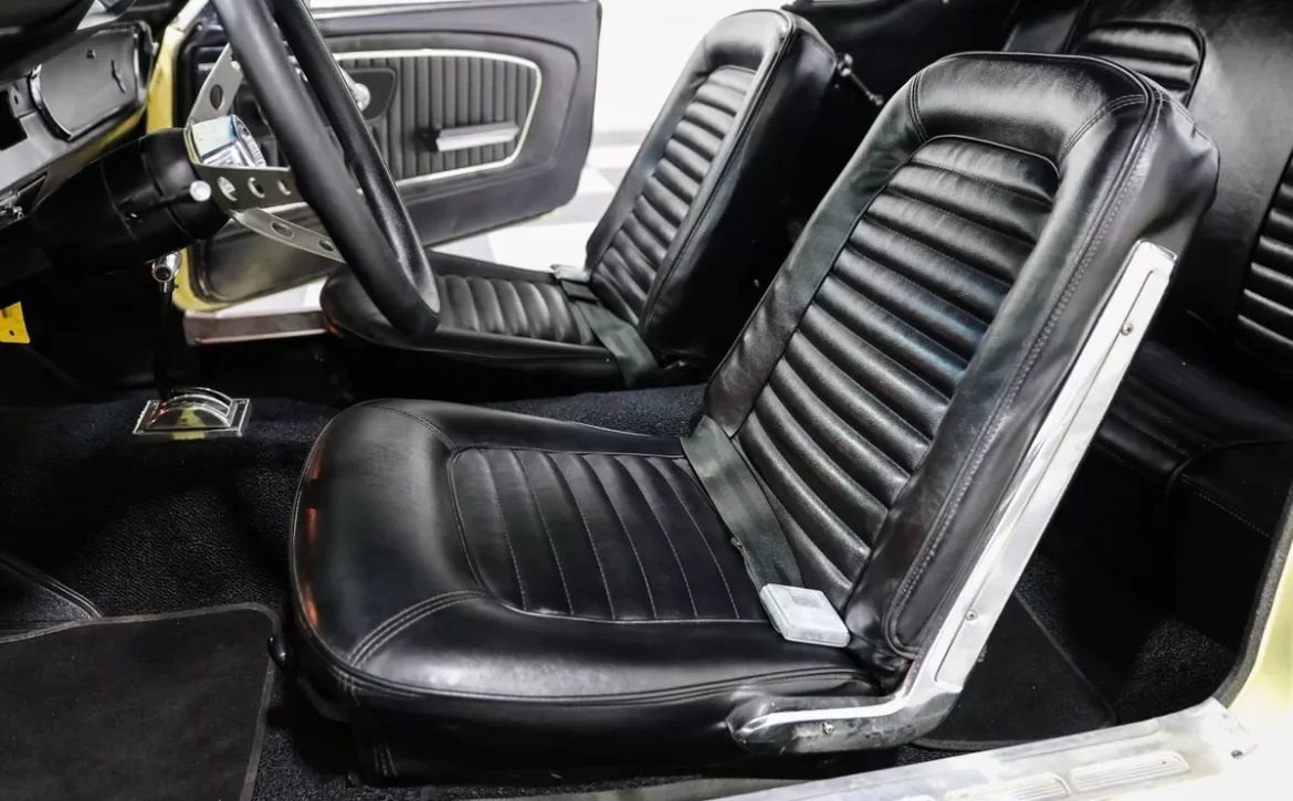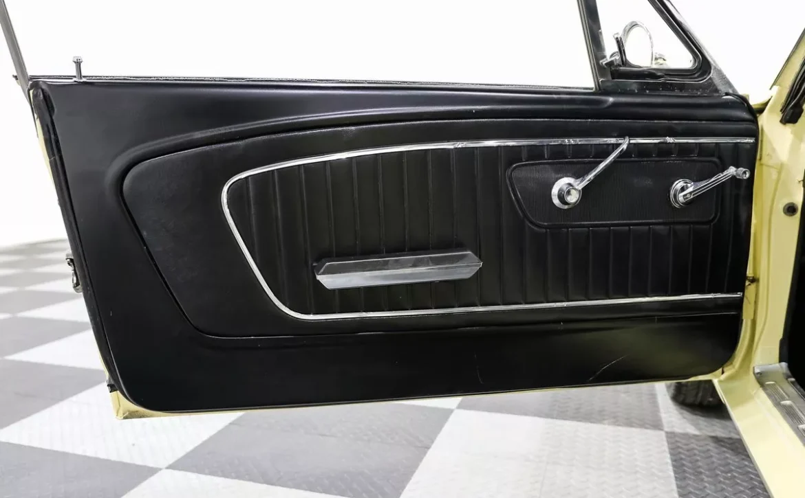 Inside, the black vinyl bucket seats provide a simple yet functional driving experience, allowing you to enjoy that low-slung, vintage feel that made the Mustang a cultural icon. The interior remains tidy and straightforward, reflecting the simplicity that helped the Mustang become a best-seller from the very beginning.