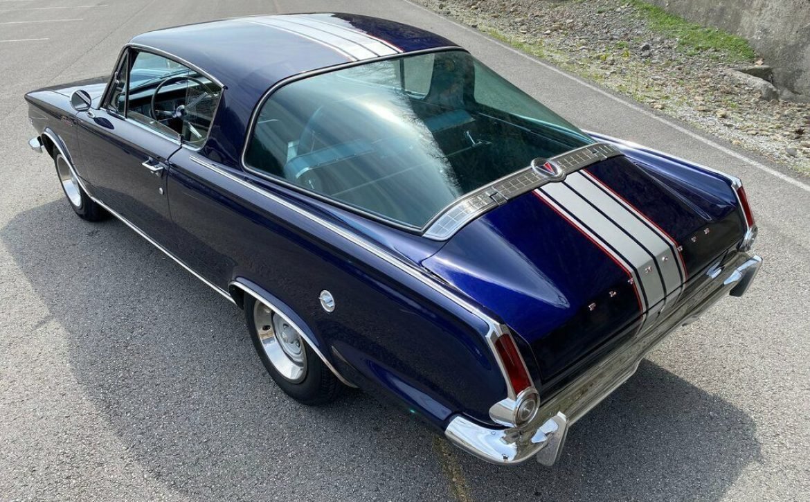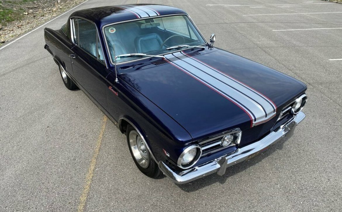 Check out this beautiful 1965 Plymouth Barracuda in fantastic condition! This classic muscle car was professionally restored a few years ago and is a true head-turner. The car is finished in a striking Dark Blue Metallic paint with silver twin stripes and red pinstriping, giving it a bold and unique look. The paint quality is outstanding—almost flawless with a deep, shiny clearcoat finish. Even the engine compartment was painted to match the car’s high-quality restoration.