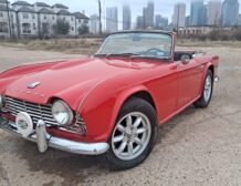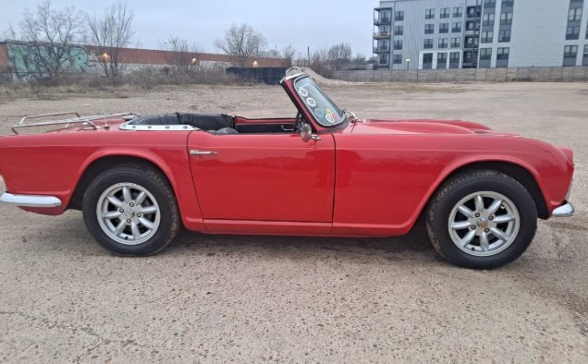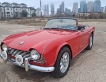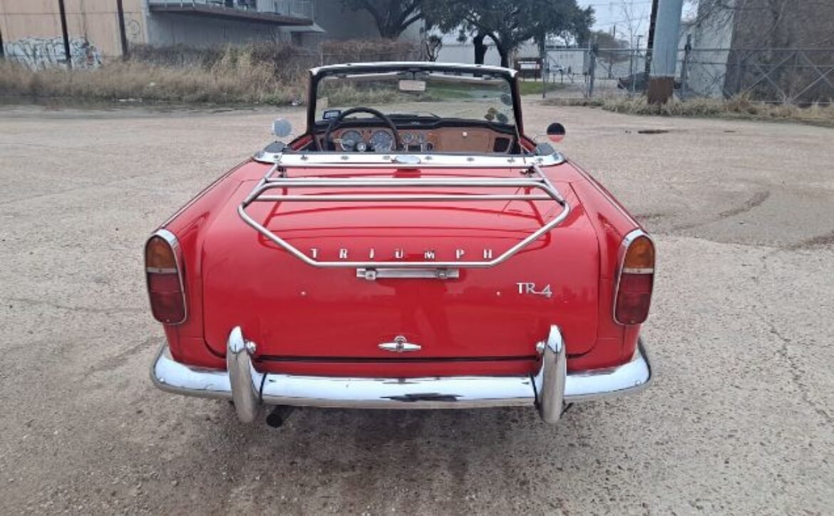 RedExperience classic motoring with the 1965 Triumph TR4 Convertible, a timeless icon in a stunning Red finish complemented by a refined Black interior. This captivating convertible has been meticulously preserved, showcasing a pristine exterior without any signs of peeling, fading, scratches, or dents.