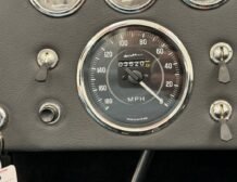 Dash & Controls: The simple dashboard houses AutoMeter gauges and toggle switches, mimicking the layout of the originals. The wood-rimmed steering wheel adds a touch of elegance, and the interior is finished off with low pile black carpet.