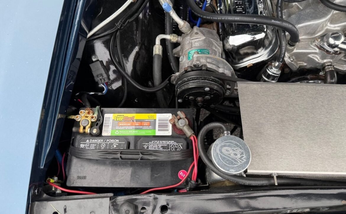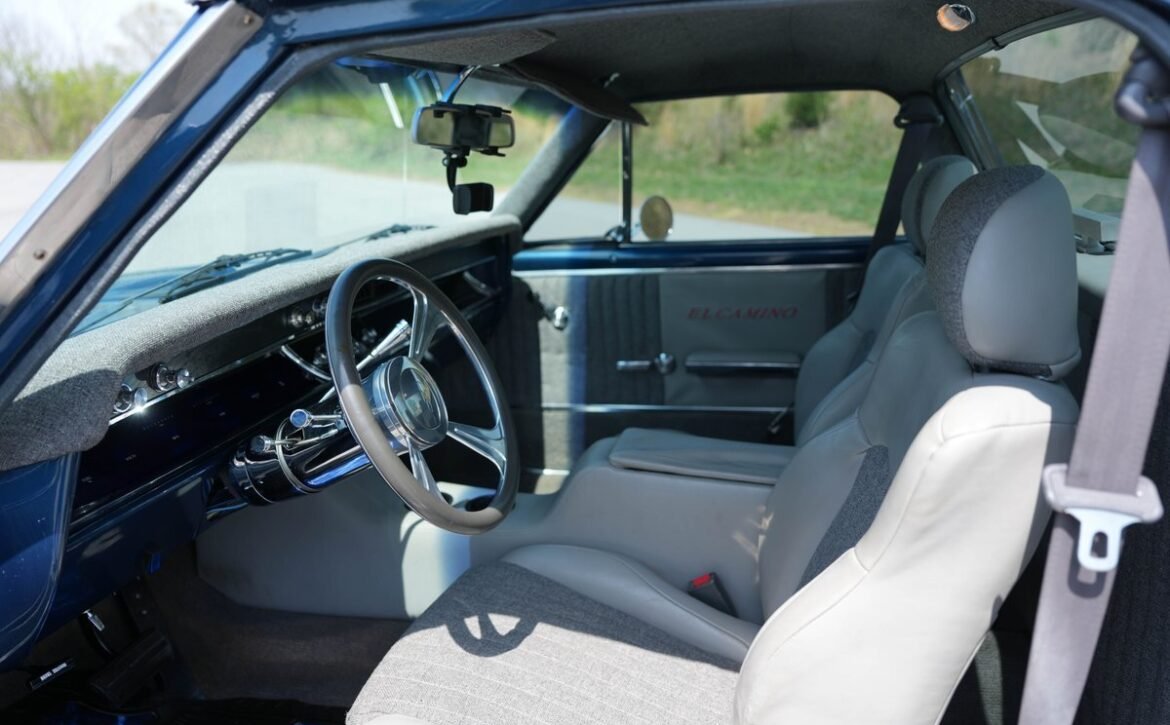 Finished in striking Blue Metallic paint, this El Camino sits on 15-inch wheels with 2024-dated Cooper Cobra Radial GT tires, giving it classic muscle stance. Tinted glass adds a modern touch.