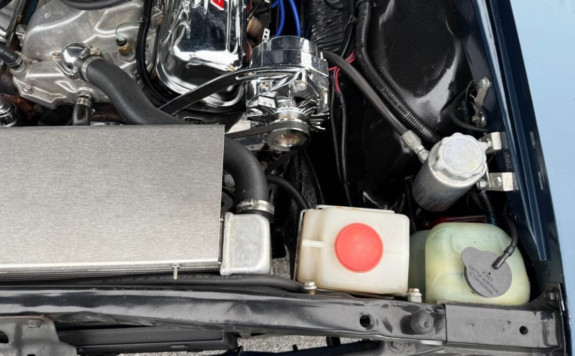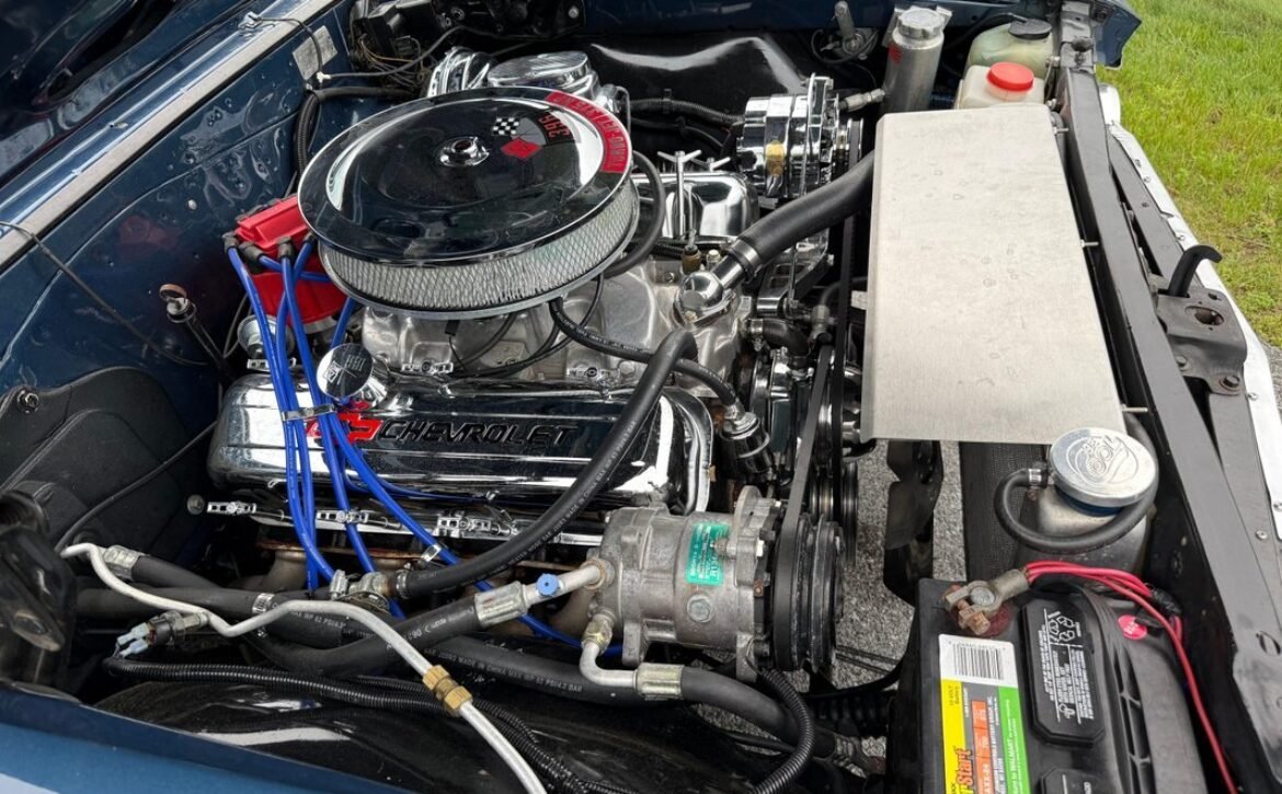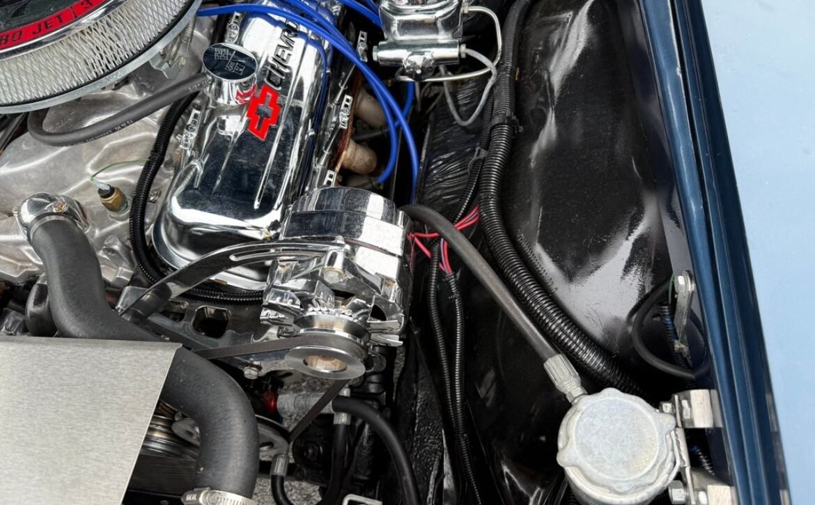Under the hood is a recently rebuilt 396 CI V8 engine paired with a TH350 3-speed automatic transmission. Power front disc brakes and rear drums provide confident stopping, while power steering offers responsive, easy handling. An aluminum radiator and chromed components—including the alternator, master booster, and valve covers—add both performance and polish.