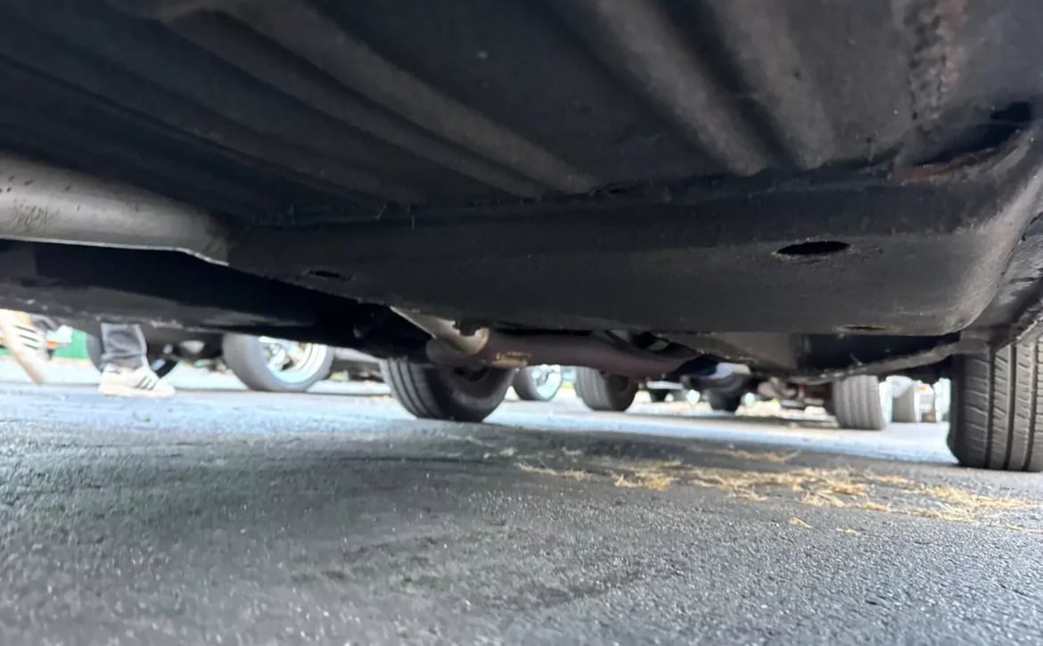 Undercarriage: Typical floor pan and torque box replacement patches, common on these convertibles