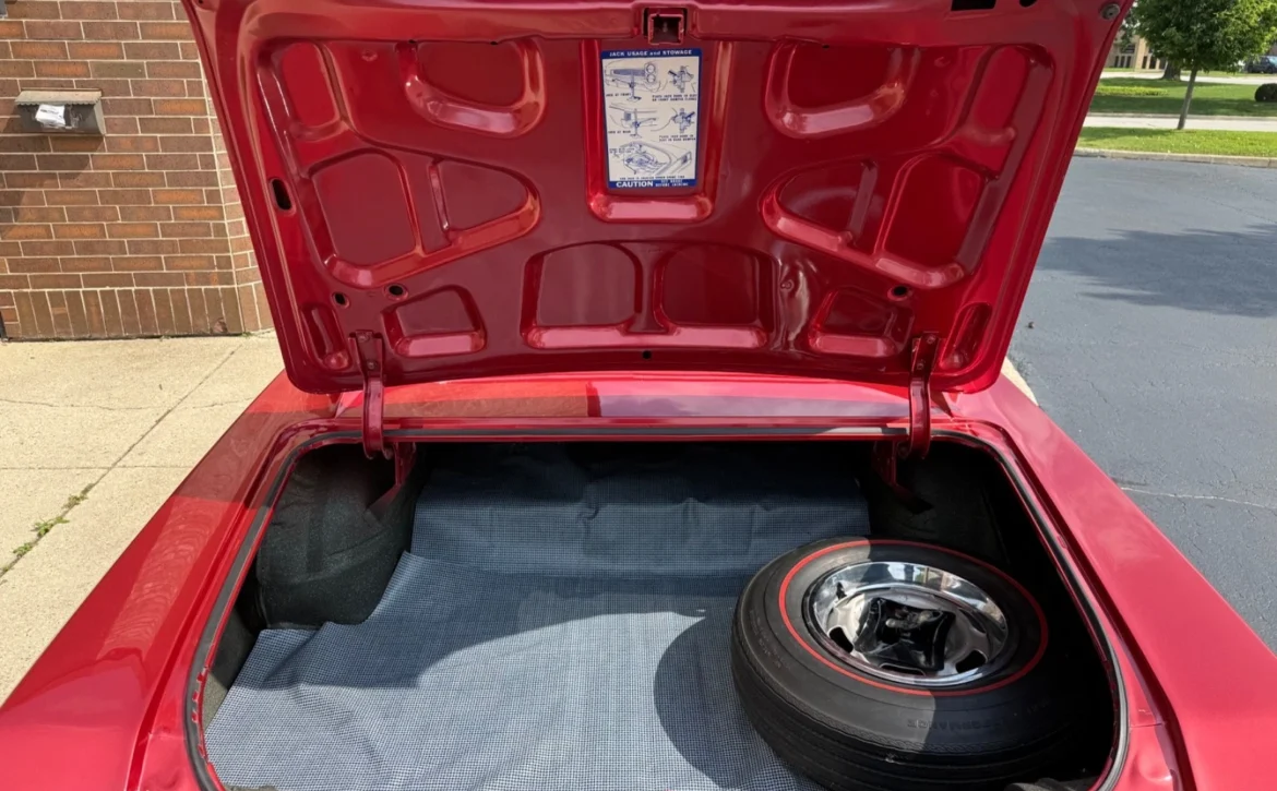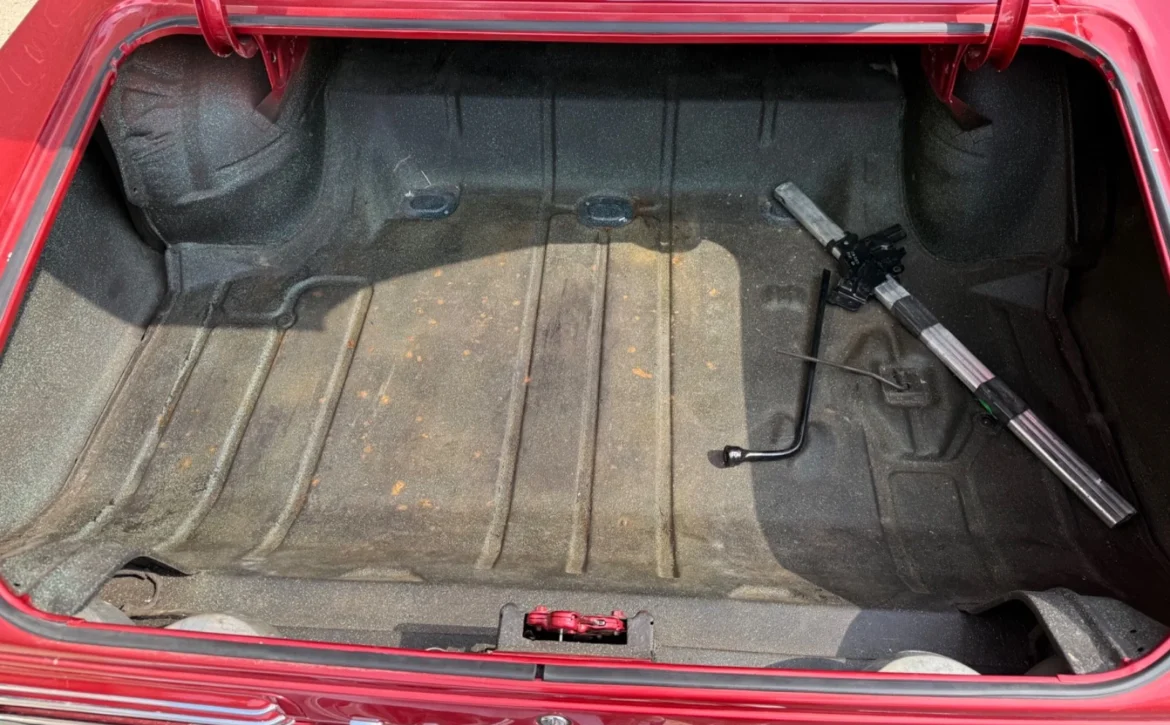 Original trunk pan finished with mat, spare, jack, and tire iron