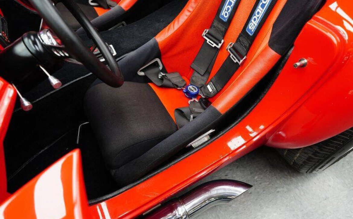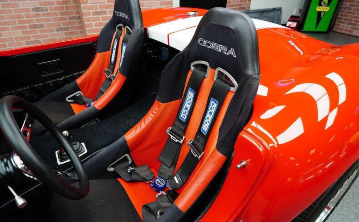 Red and Black Cobra Seats with Sparco 4-Point Harness for both comfort and safety