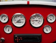 Full complement of white-faced gauges – volts, oil, temperature, fuel, tachometer, and speedometer (shows 1950 miles)