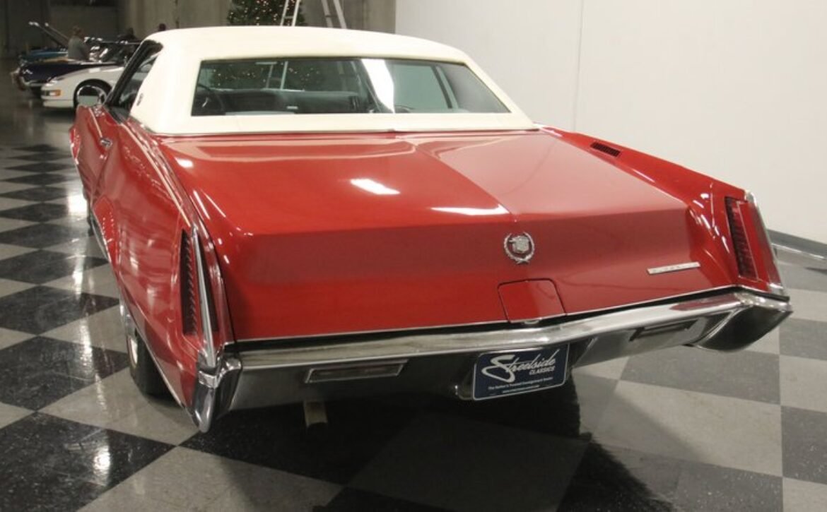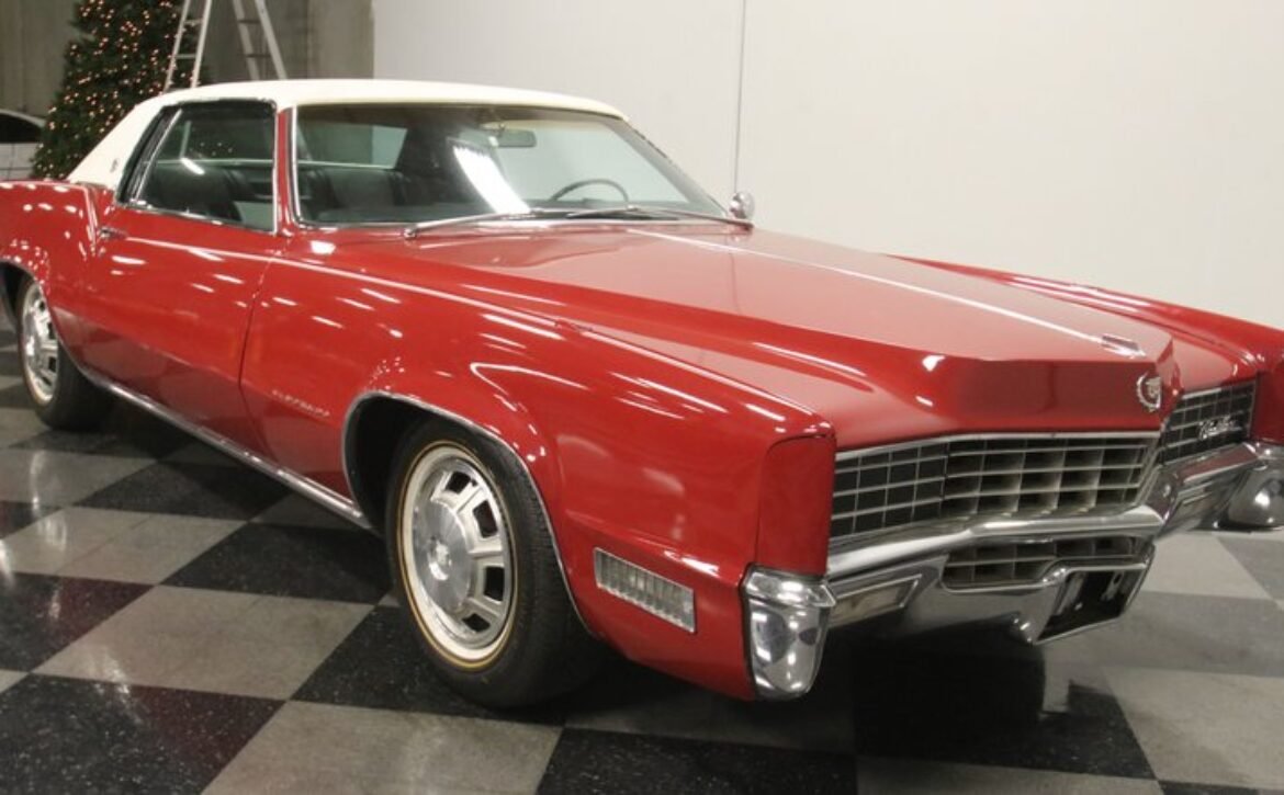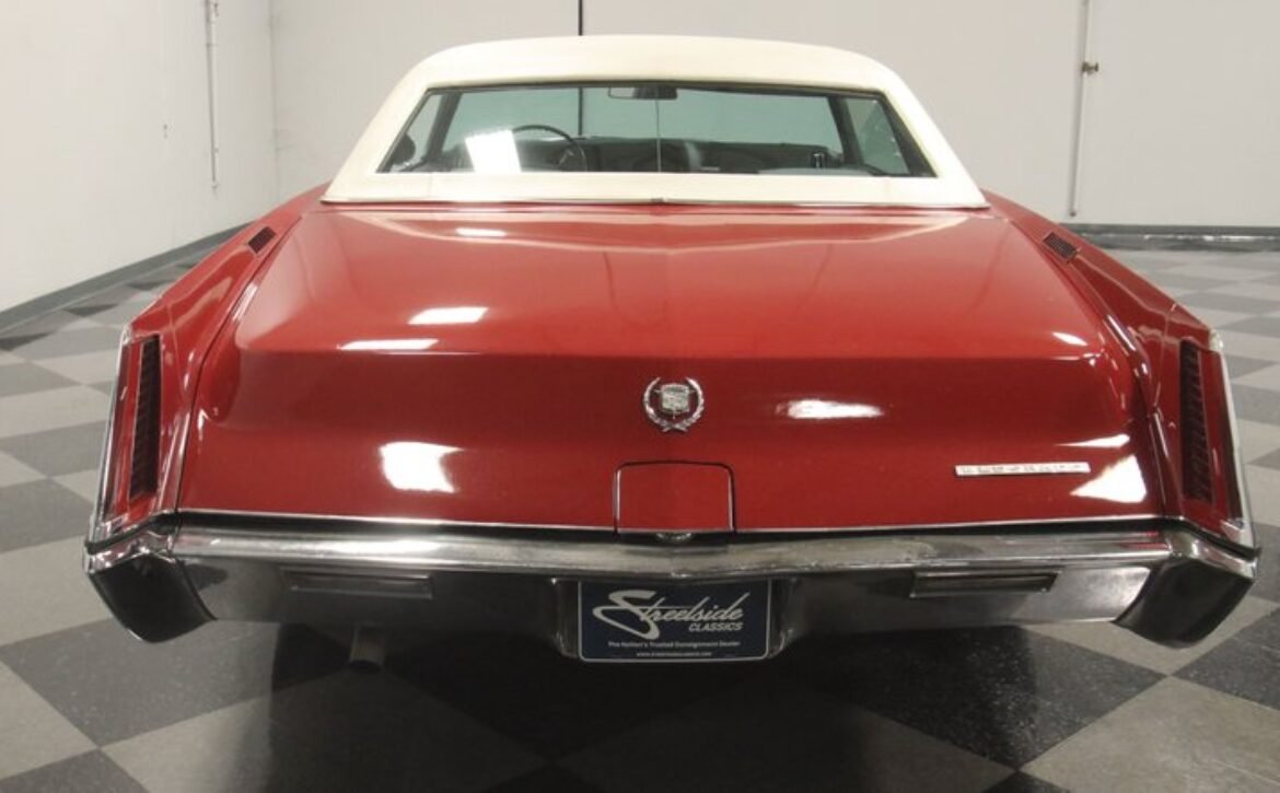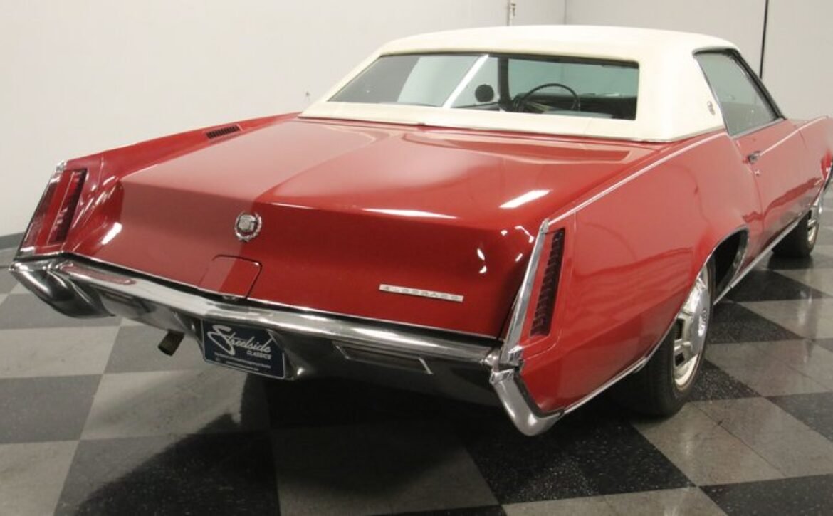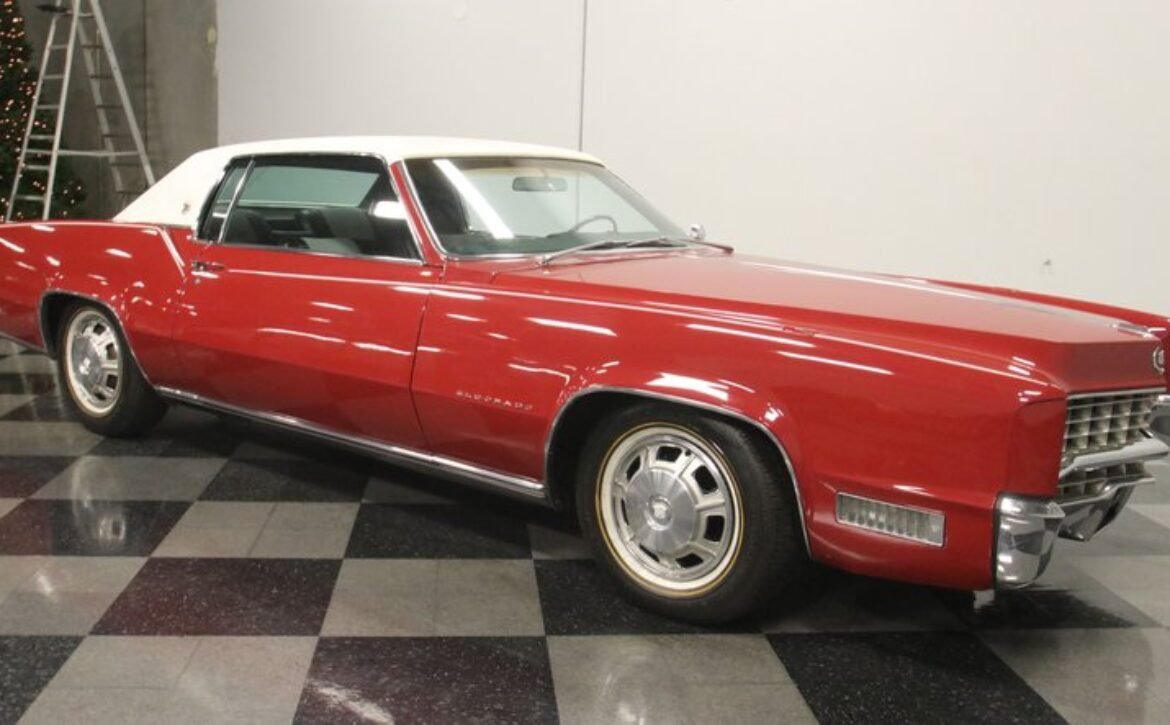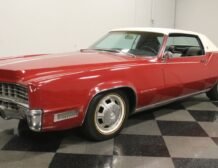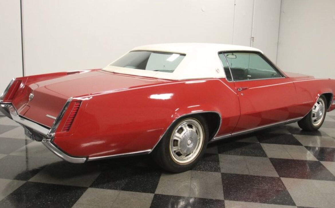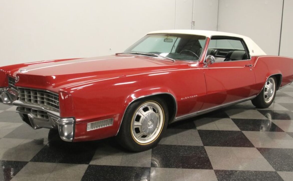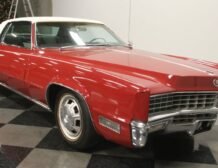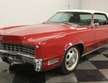 Flamenco RedThe 1967 Cadillac Eldorado is a hallmark of classic automotive engineering, renowned for setting a new standard in luxury coupes. The Eldorado was designed for premium distinction, offering a singularly exclusive experience with its sleek lines, bold front end, and hidden headlights, embodying a muscular car aesthetic while maintaining upscale values. Its distinct Flamenco Red hue combined with a white vinyl top and pinstripe adds an opulent touch to this grand Cadillac coupe.