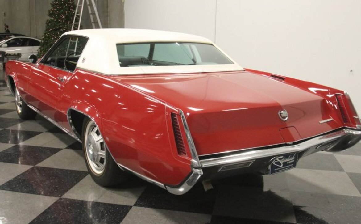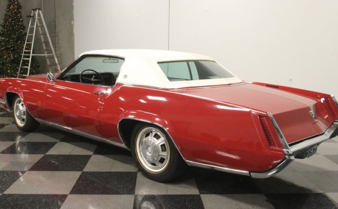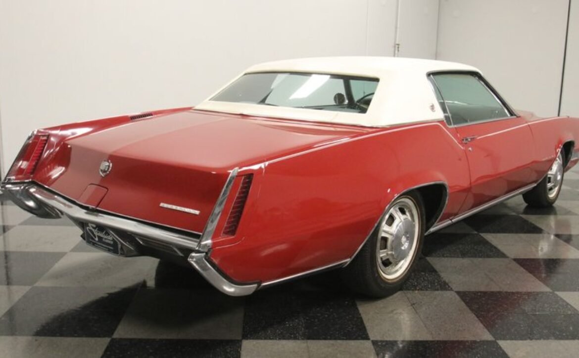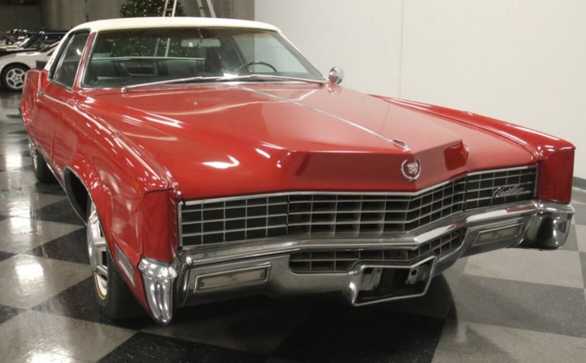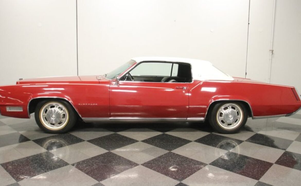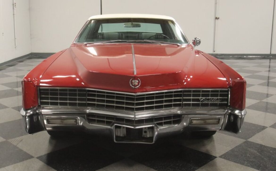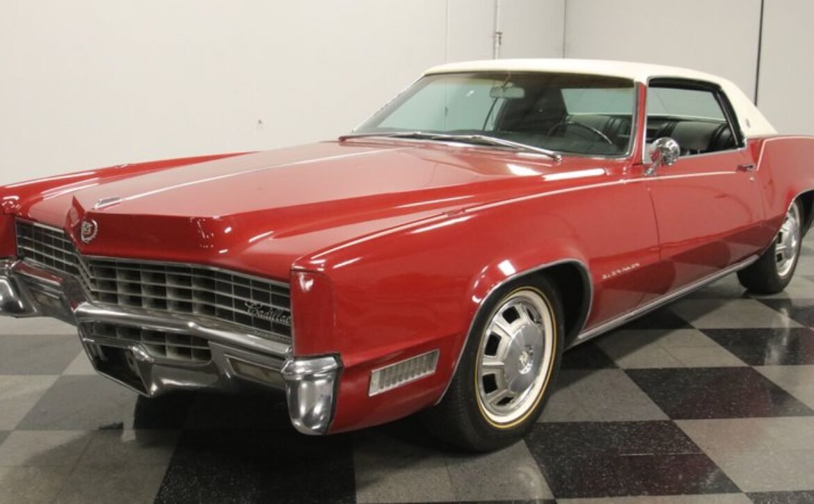 Flamenco RedThe 1967 Cadillac Eldorado is a hallmark of classic automotive engineering, renowned for setting a new standard in luxury coupes. The Eldorado was designed for premium distinction, offering a singularly exclusive experience with its sleek lines, bold front end, and hidden headlights, embodying a muscular car aesthetic while maintaining upscale values. Its distinct Flamenco Red hue combined with a white vinyl top and pinstripe adds an opulent touch to this grand Cadillac coupe.