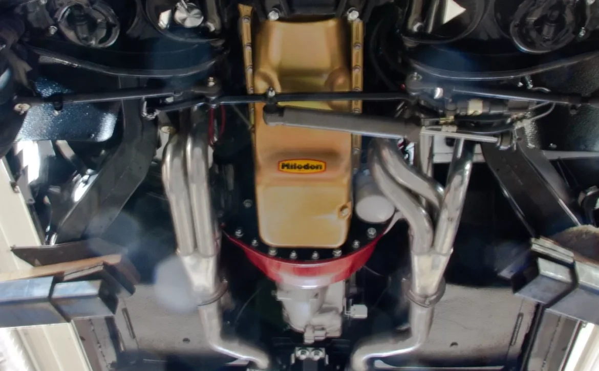 Radiator: Dewitt’s high-performance aluminum radiator with a mechanical fan to keep the engine cool under pressure.