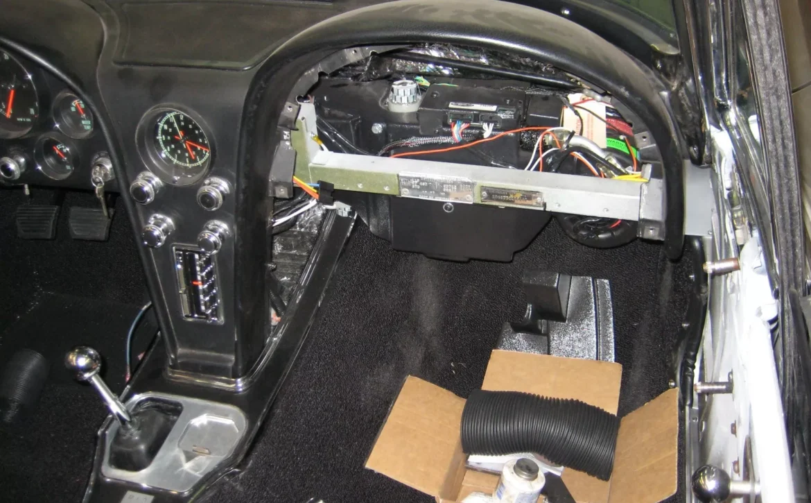 Dashboard and Gauges: Refurbished dashboard and gauges with modern features. Equipped with a vintage-style radio that retains the classic Corvette appearance.