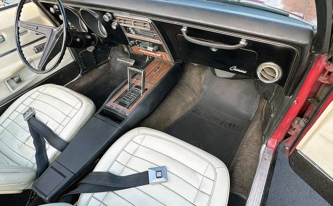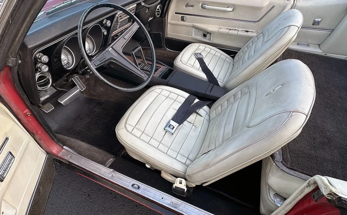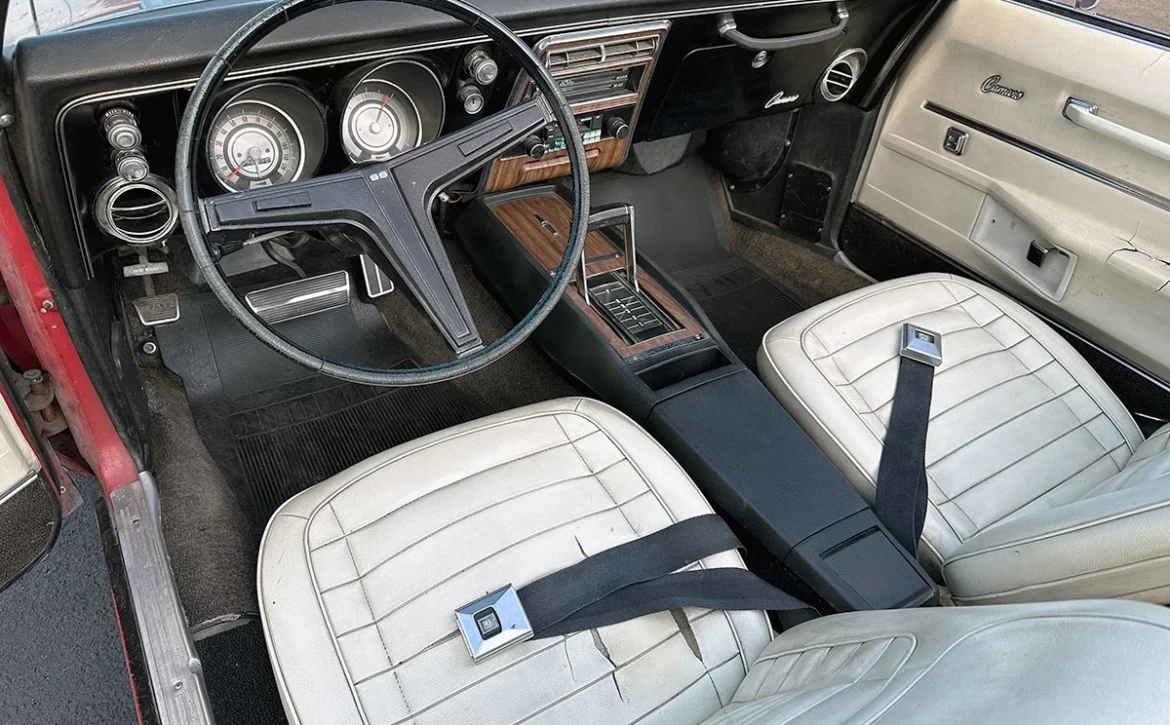 is a rare and highly optioned Camaro Convertible, equipped with a 396/350 HP engine (1968 replacement block) and a Turbo 400 automatic transmission. This car offers an exceptional combination of originality, performance, and restoration potential.