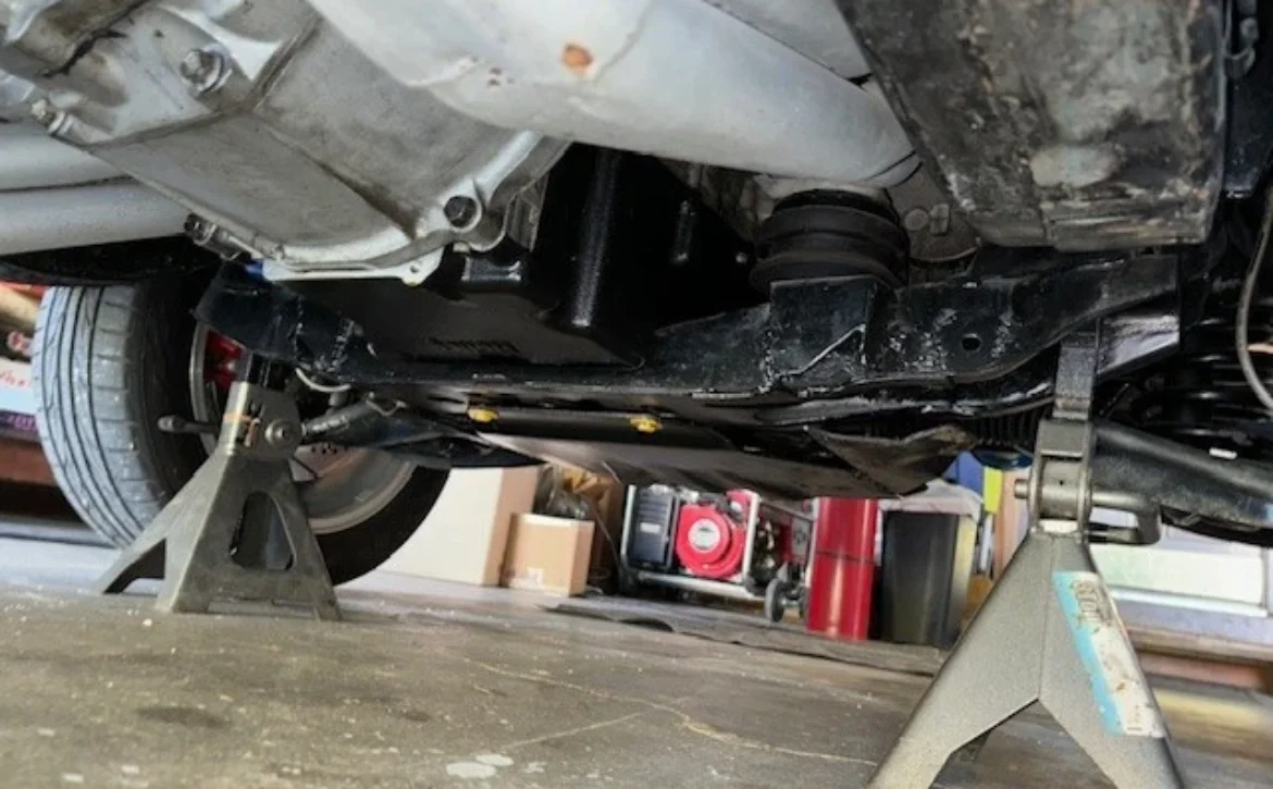 Custom-fit GTO floor and dash (engine/trans moved 7” back for improved weight balance)