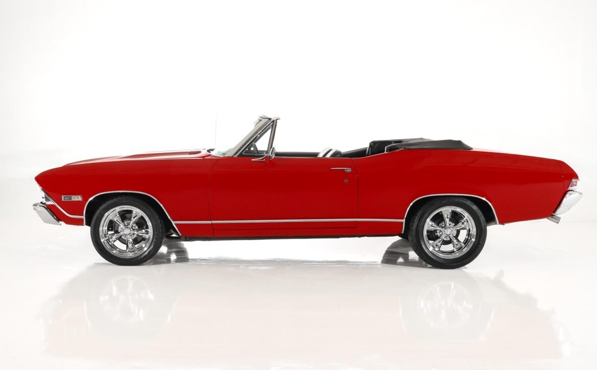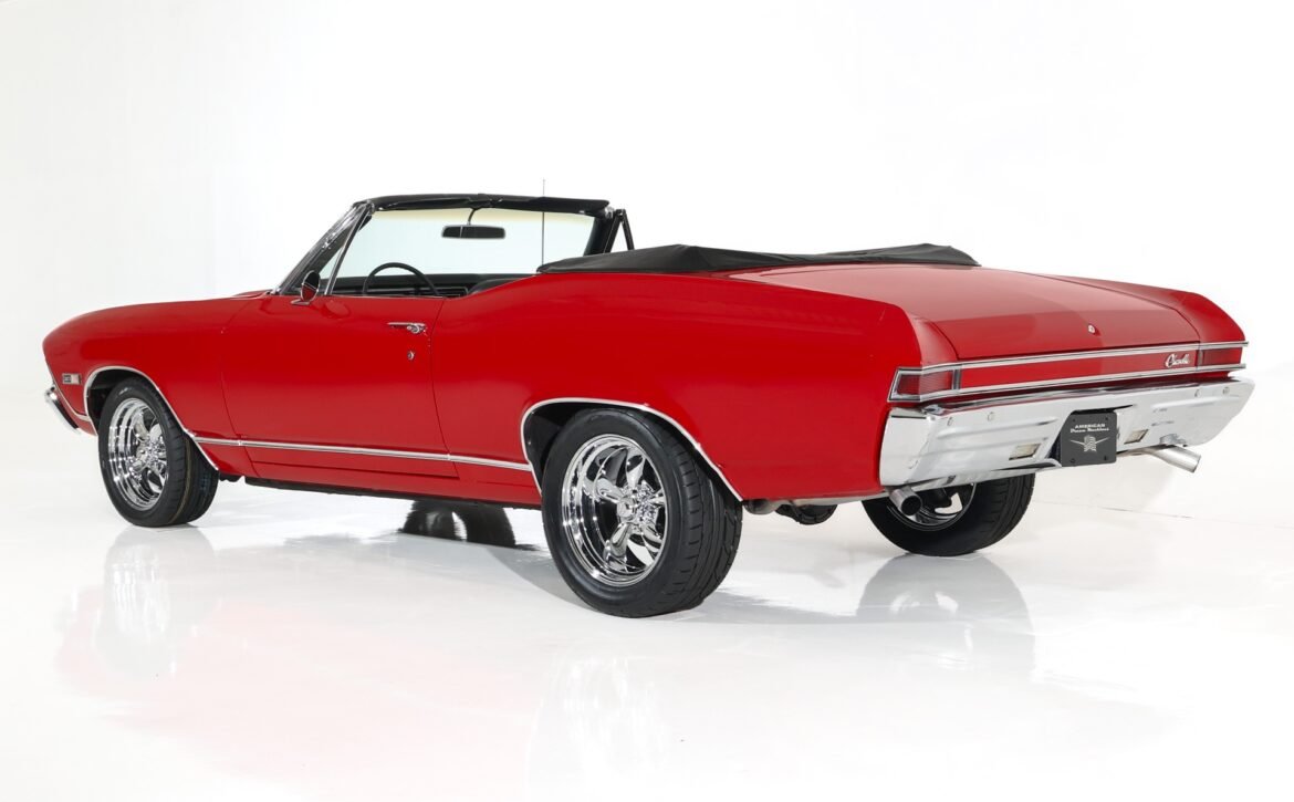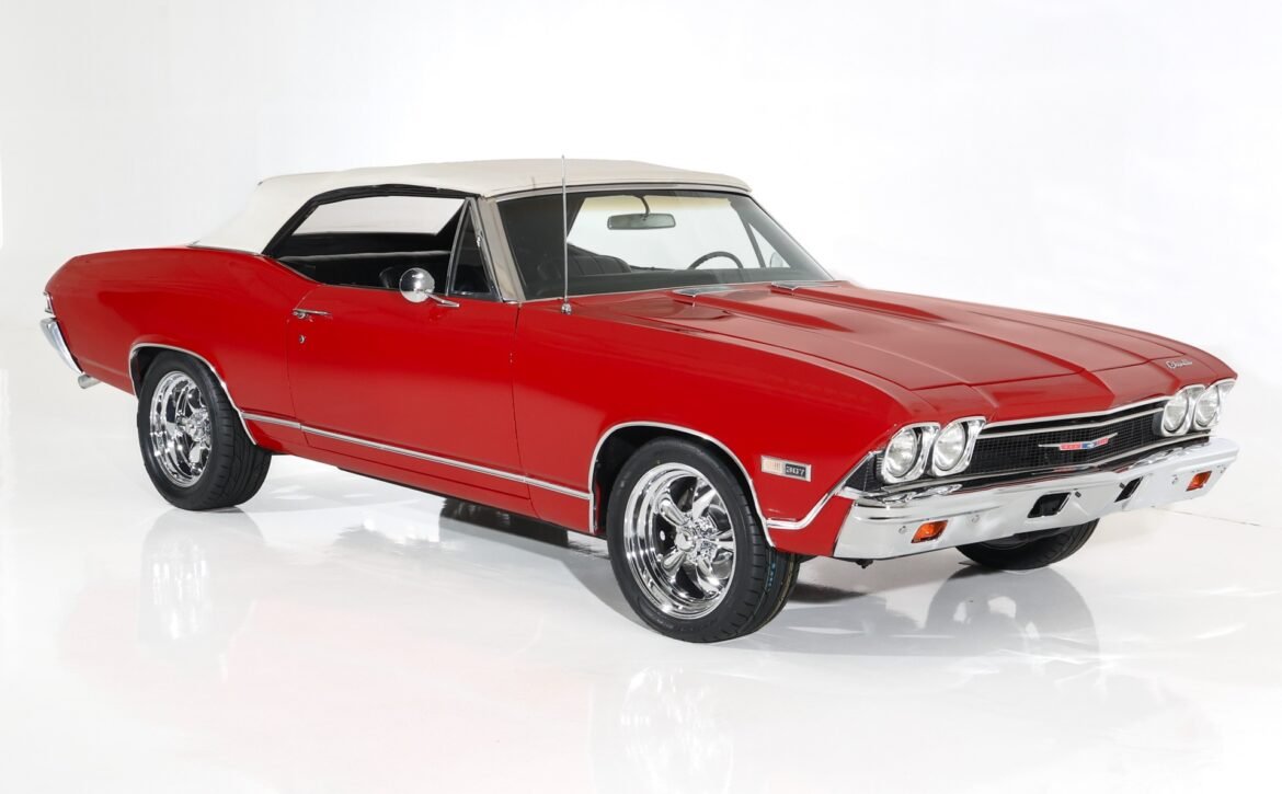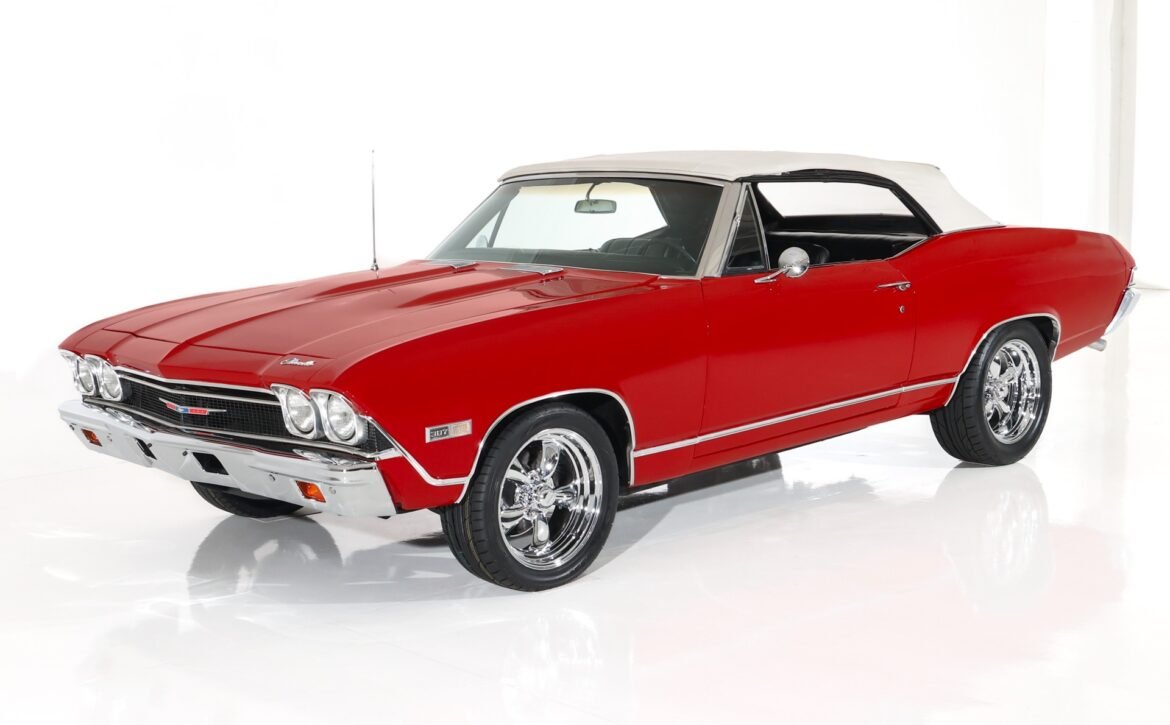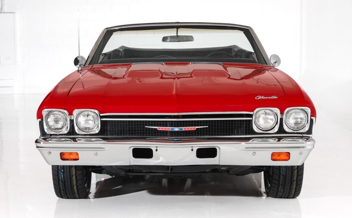 RedExperience the thrill of classic American muscle with this stunning 1968 Chevrolet Chevelle Convertible. This iconic vehicle sports a striking Matador Red finish, perfectly complemented by a white soft top and a refined black bucket seat interior.
